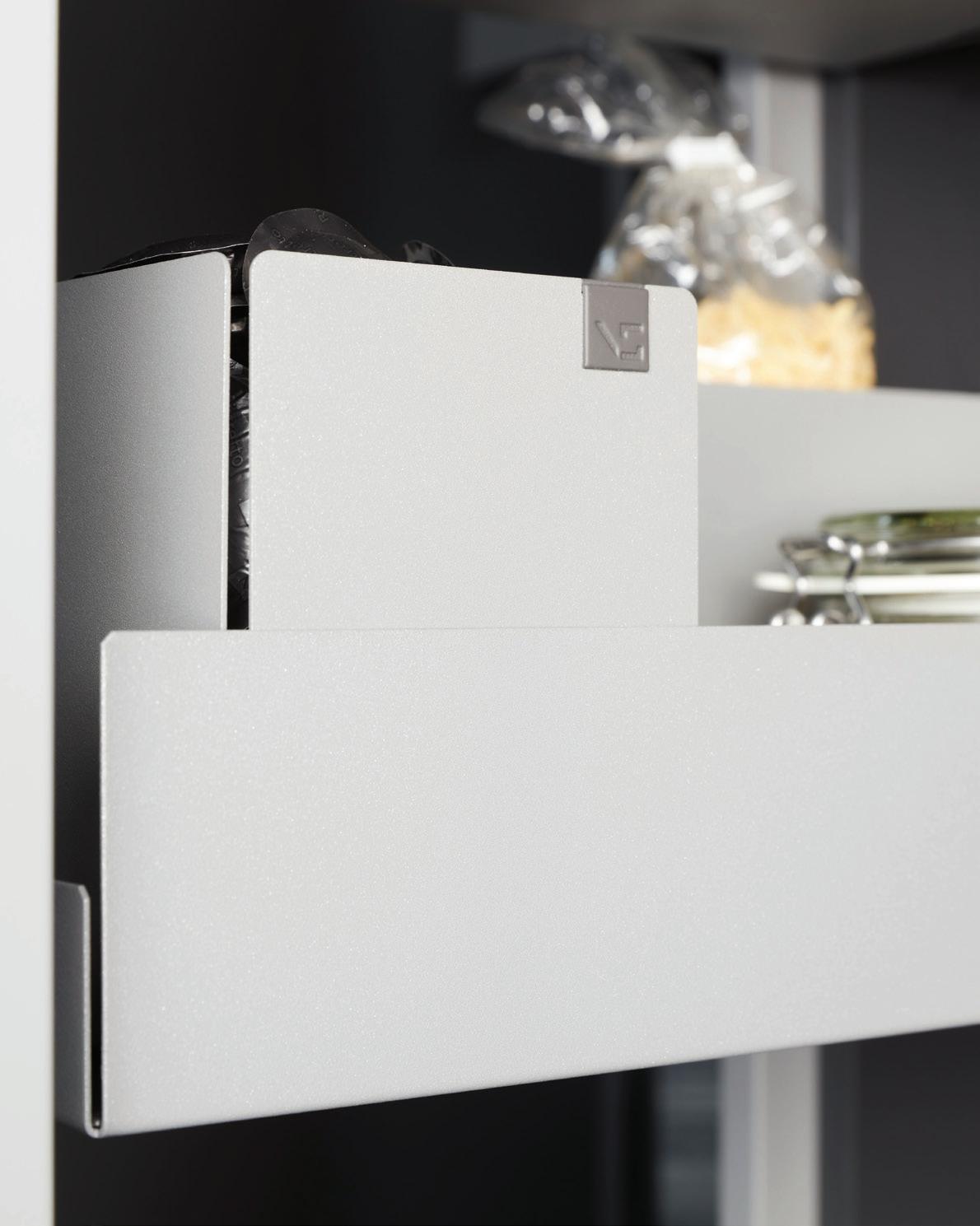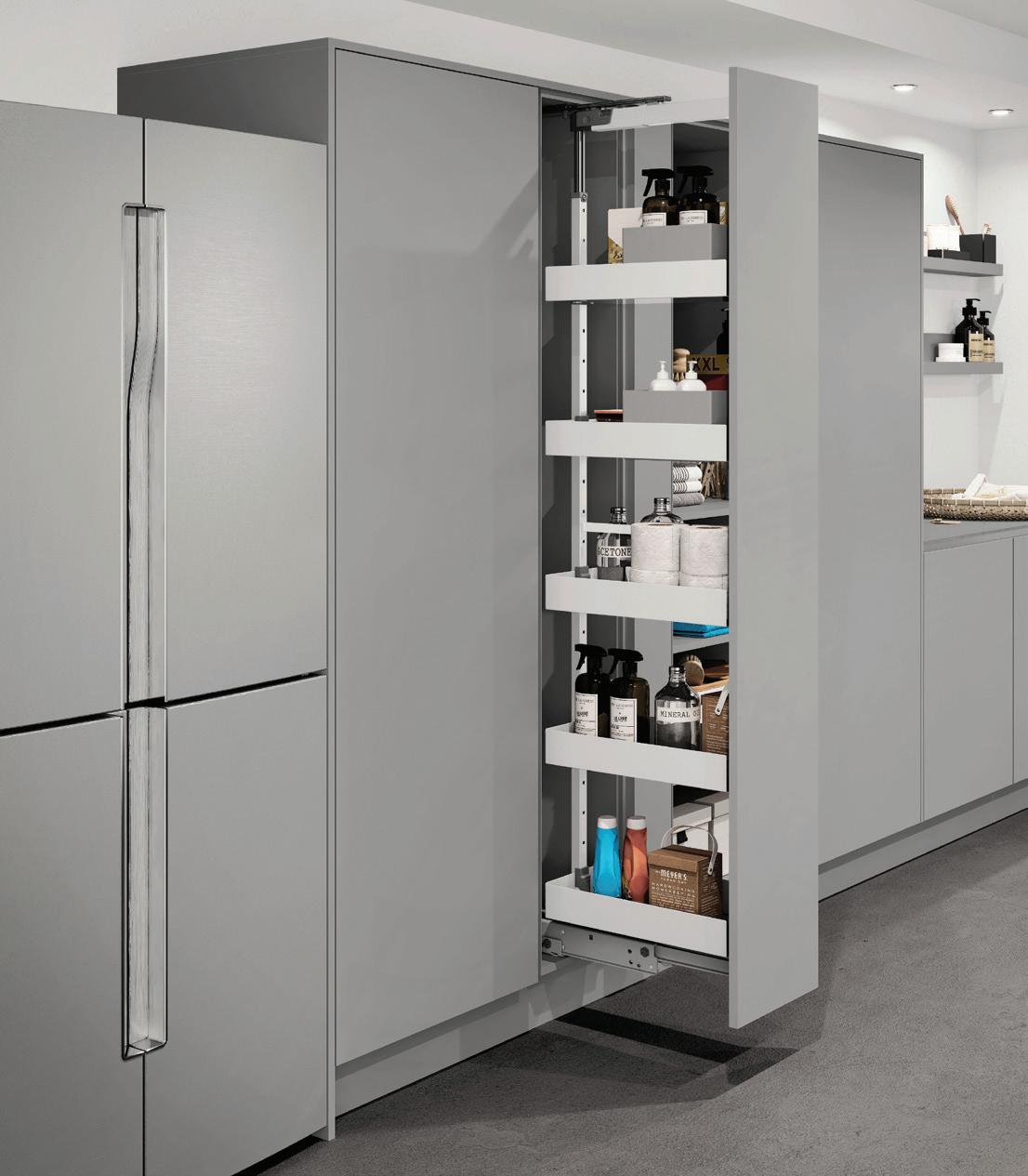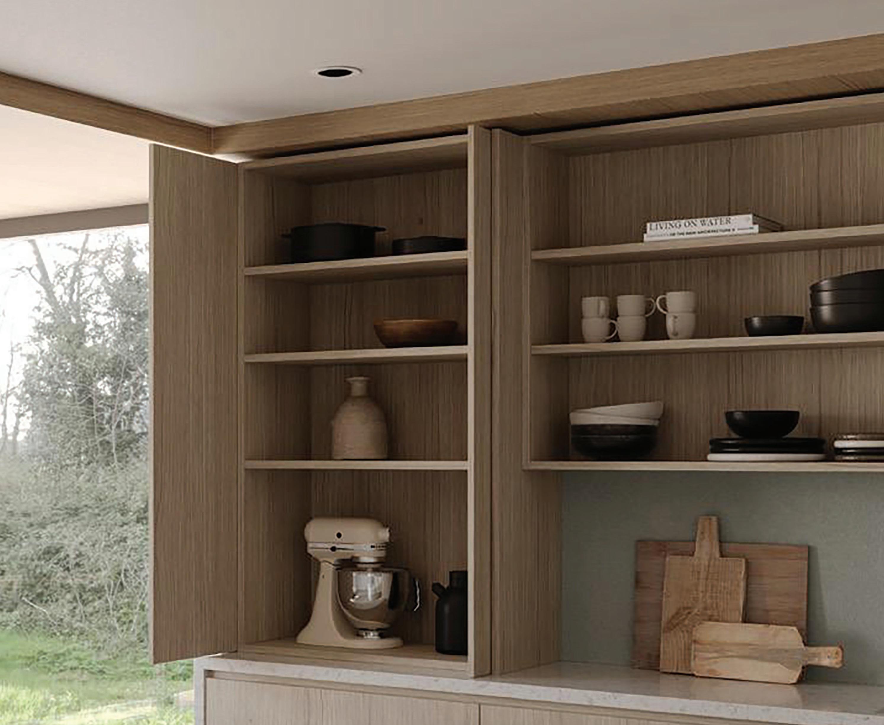 OUT: Doors open independently from within the cabinet with assisted motion, activated by a light touch