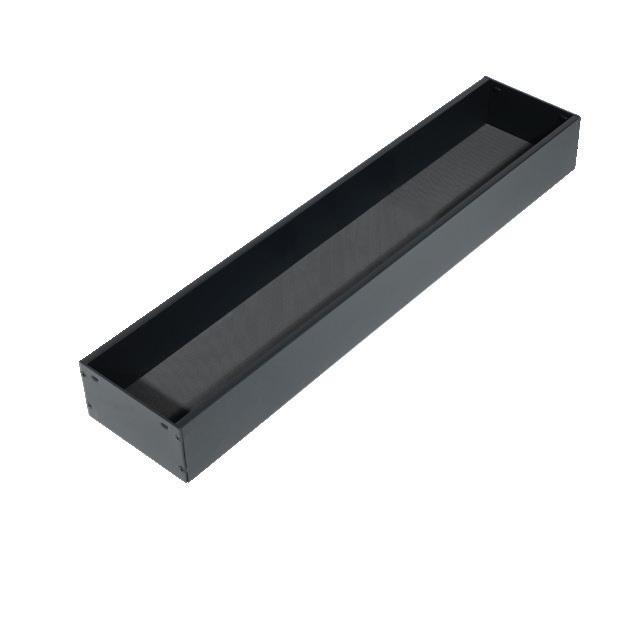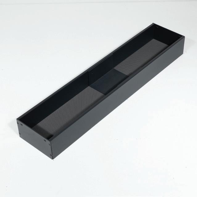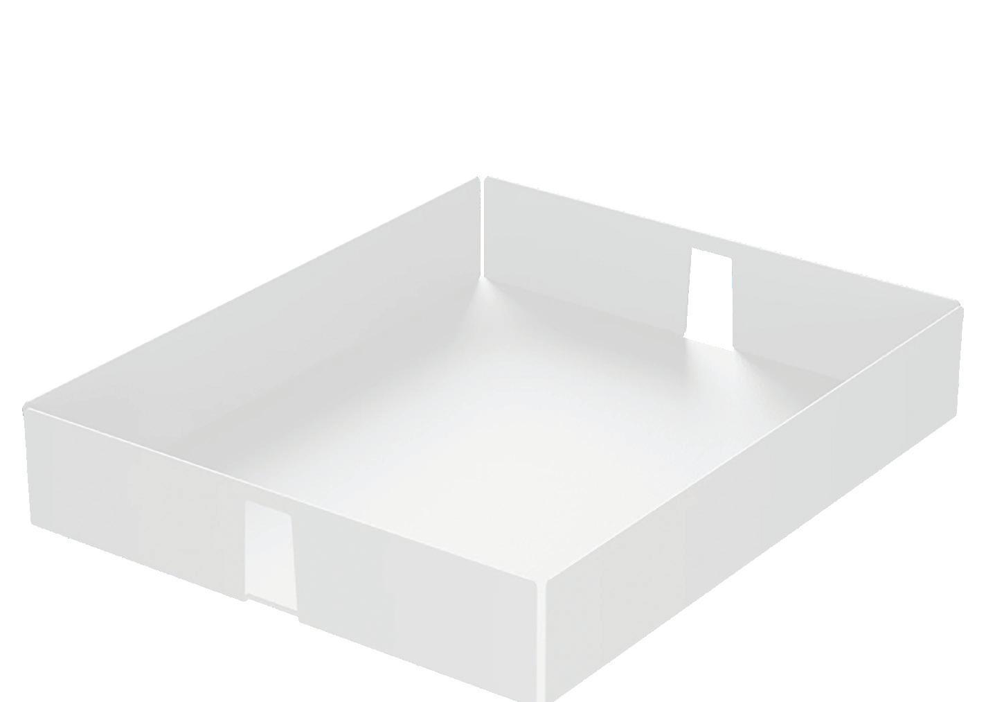 Closed metal tray variant crafted from bevelled sheet steel, showcasing a minimalist and timeless design.