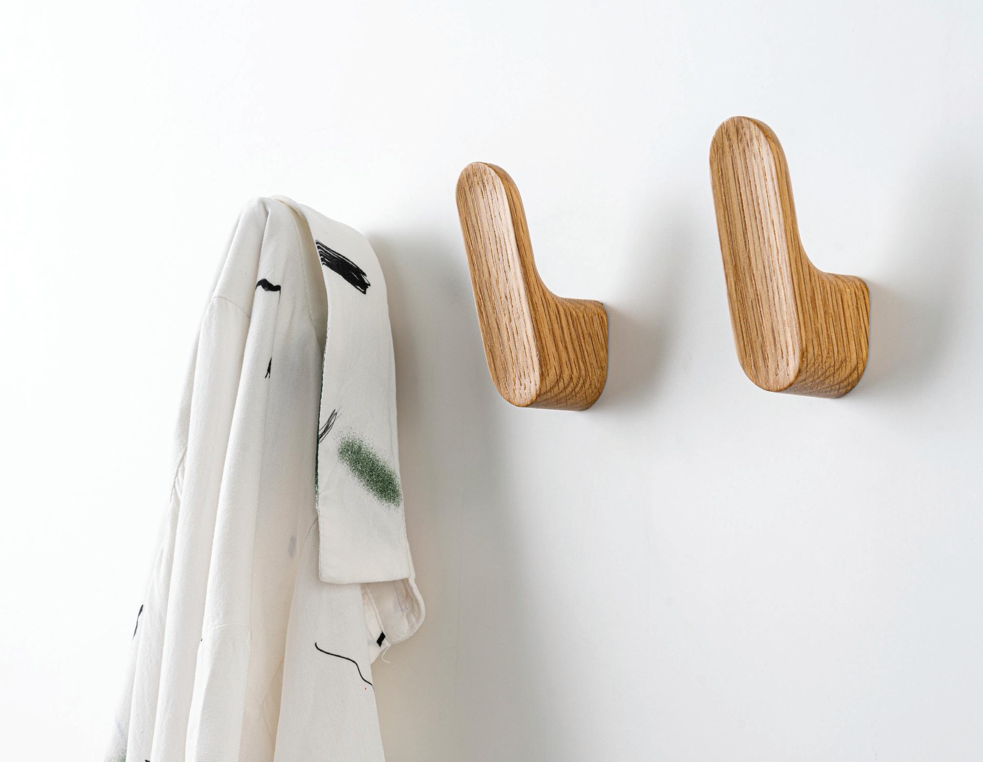 The Luv Wood door stop and wall hook extend the elegant, ergonomic aesthetic of the Luv Wood range with sculpted, flowing forms that offer both protection and practical functionality. Available in oak and walnut, both pieces deliver durable construction and cohesive, contemporary style for modern interiors.