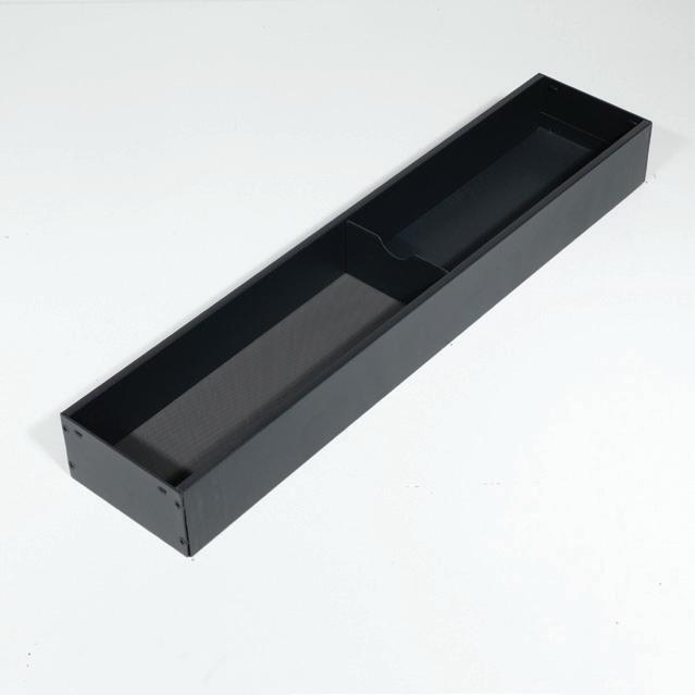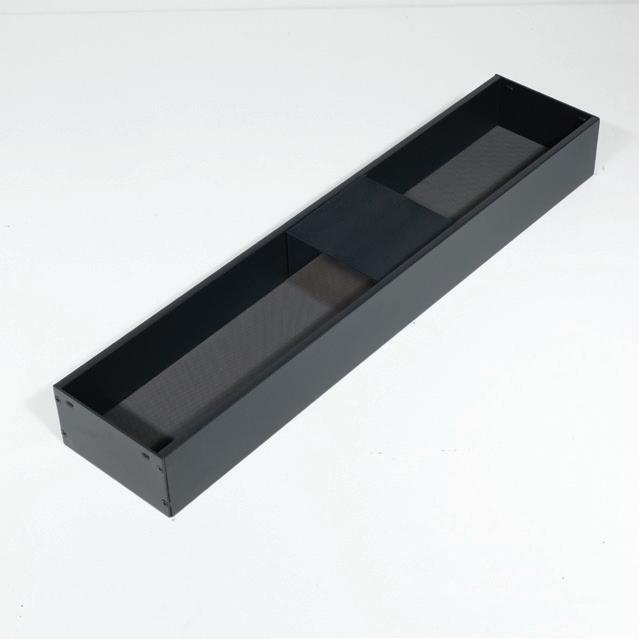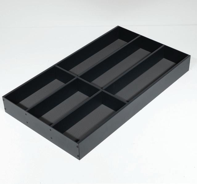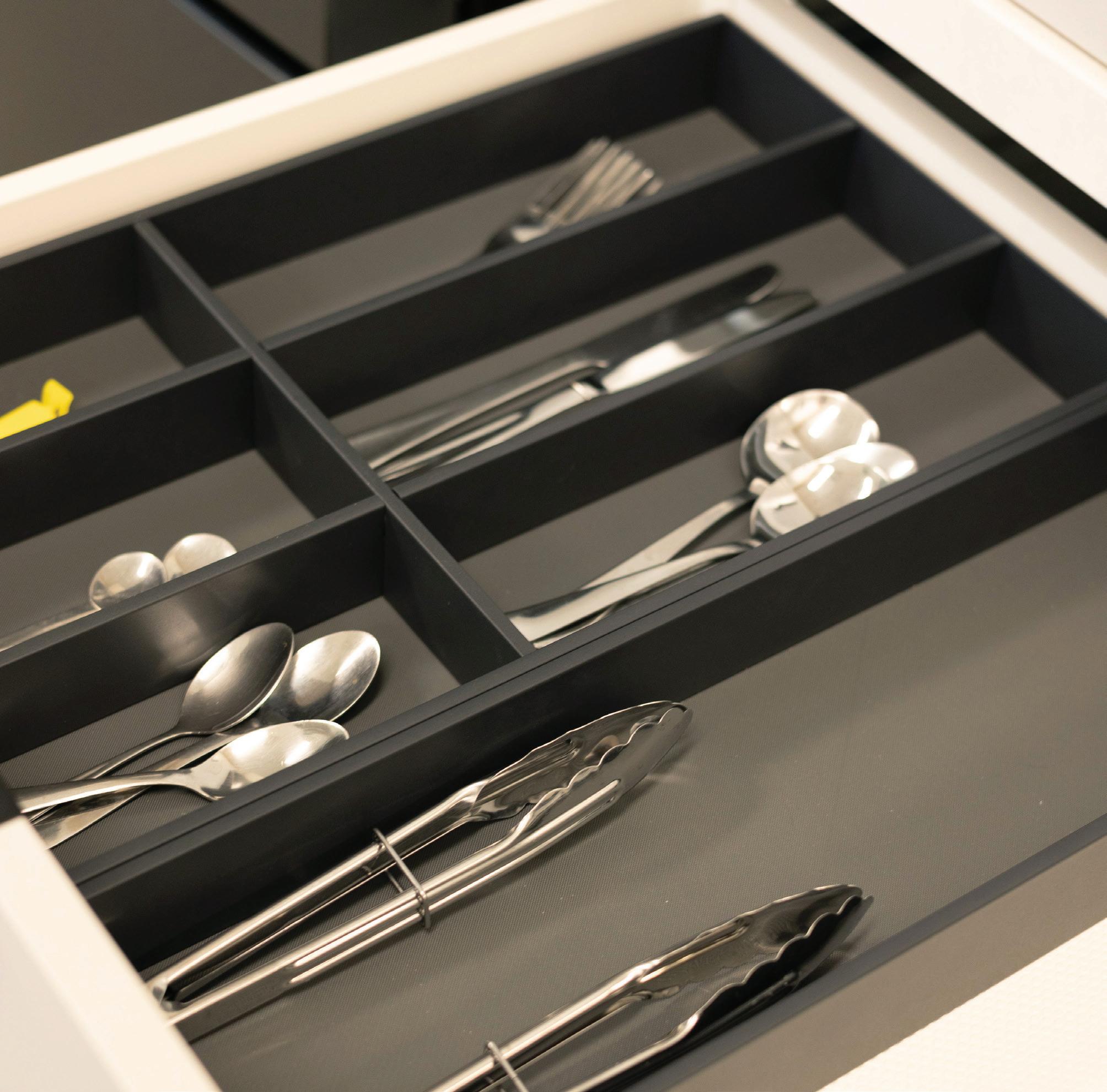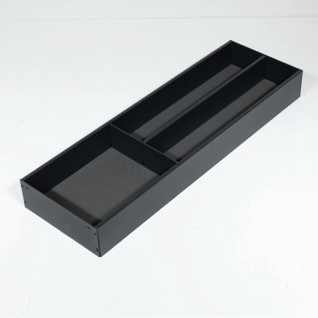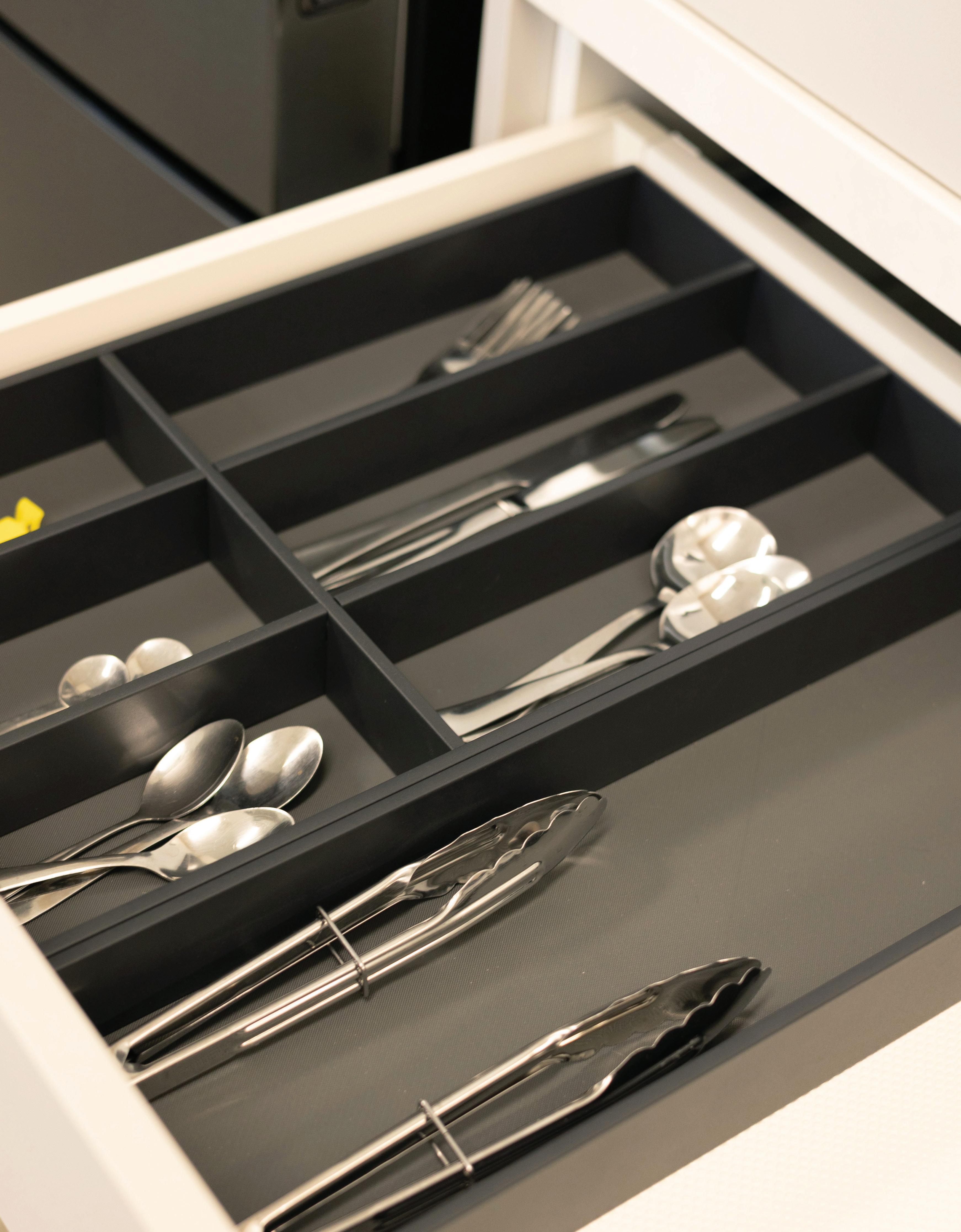 The Storg Strada cutlery divider range features robust powdercoated steel construction for lasting durability, complemented by an integrated non-slip base to keep utensils securely in place. Its sleek, thin-wall design is crafted to suit most modern drawer systems, offering a streamlined and practical solution for organised kitchen storage.