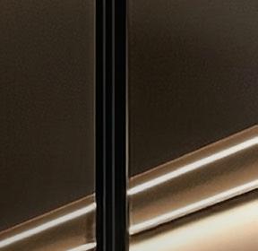 Exedra2 Smart allows for shorter pocket depths. The door edges remain visible and protrude slightly when retracted into the pocket. Recessed handles or lip pull handles should be used on Exedra2 Smart applications.
