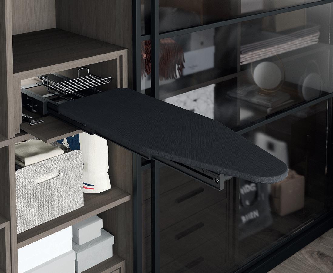 • Practical ironing board drawer solution for wardrobes