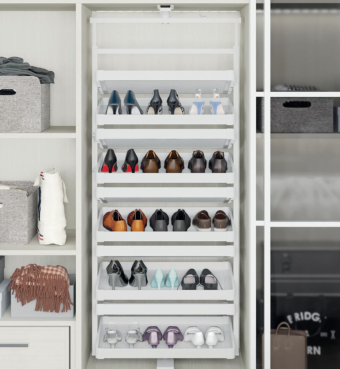 • Angled shelves ensure every pair is easy to reach