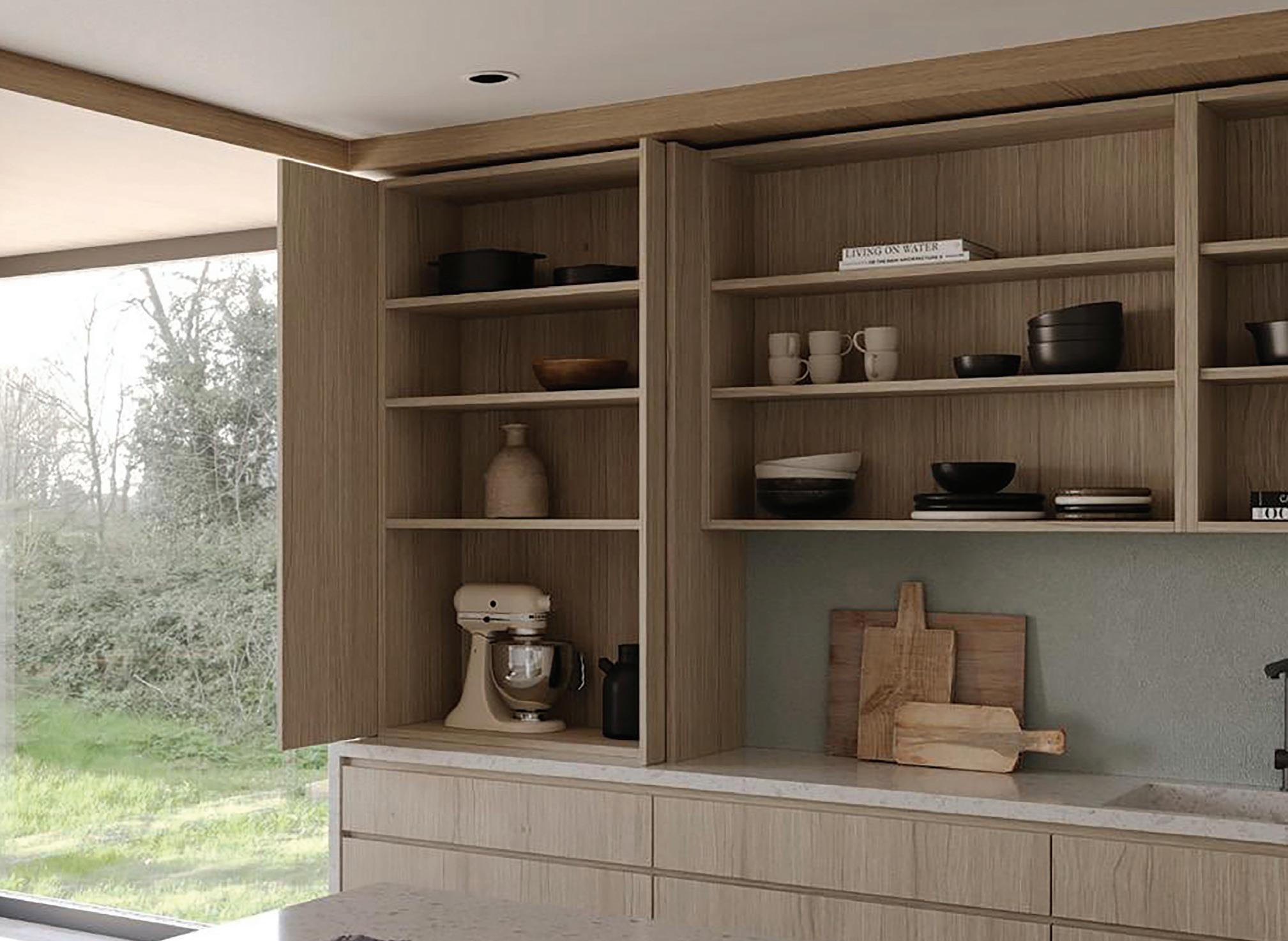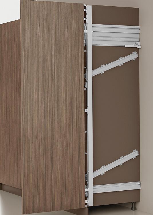 OUT: Doors open independently from within the cabinet with assisted motion, activated by a light touch