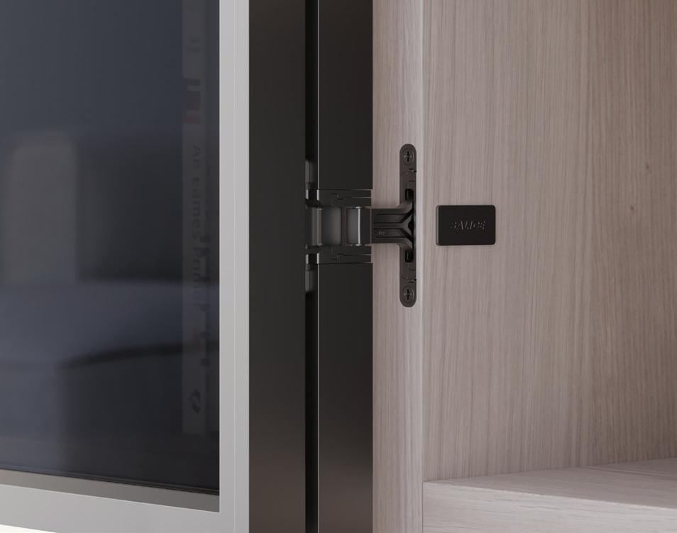 Exedra Gravity can be supplied with hinges and Smove, for a decelerated closing, or Push to open hinges for handle-less doors.