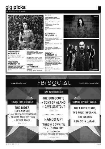 THURSDAY OCTOBER 10 Calling All Cars + Super Best Friends + The Sinking Teeth Goodgod Small Club, Sydney. 8pm. $22.95.