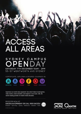 REGISTER NOW AT: sae.edu.au/openday or call 1800 SAE EDU Brisbane | Byron Bay | Sydney | Melbourne | Adelaide | Perth SAE CRICOS Provider Code 00312F