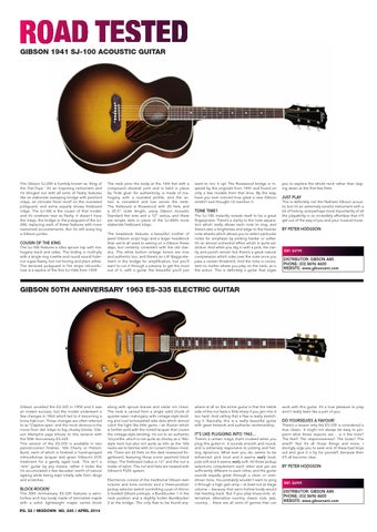 you to explore the whole neck rather than staying down at the first few frets. JUST PLAY This is definitely not the flashiest Gibson acoustic but it’s an extremely tuneful instrument with a lot of history, and perhaps most importantly of all the playability is so incredibly effortless that it’ll get out of the way of you and your musical muse. BY PETER HODGSON