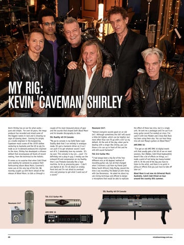 MY RIG: KEVIN 'CAVEMAN' SHIRLEY Kevin Shirley has an ear for what works pure and simple. For over 40 years, the mega producer has recorded and mixed some of the biggest names in rock and is showing no signs of slowing down. Earning his stripes as a studio engineer in the burgeoning Capetown music scene of the 1970’s before venturing to Australia and the US to ply his trade as an in-demand producer/mix engineer to the stars, Shirley has developed a virtuoso skillset that encompasses all facets of record making, from the technical to the holistic. It comes as no surprise that when Cold Chisel were looking for someone to produce their forthcoming album Blood Moon, Caveman’s name was at the very top of the list. We recently caught up with Kevin ahead of the release of Blood Moon, to talk us through a