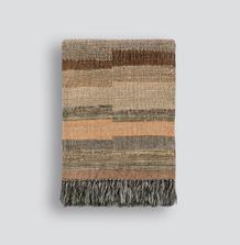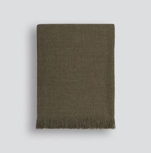 Medium-weight wool throw woven in slubby two-tone yarn. Dense, contrasting 30mm fringe finish.