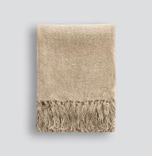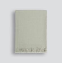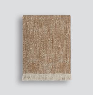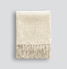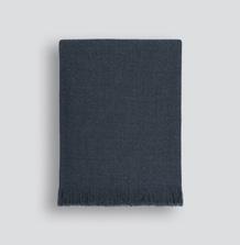 Double-sided, two-tone textural weave with a chambray effect. Soft fringe edge detailing.