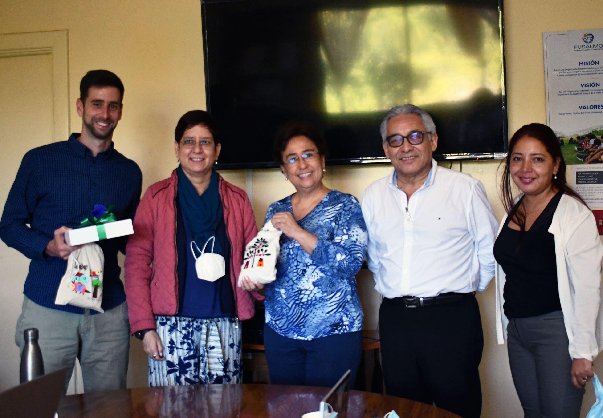 Director Ejecutivo de FUSALMO y Guadalupe Leiva, Gerente de Gestión Sociolaboral, para una reunión de rendición de cuentas sobre el manejo de fondos, el cumplimiento de metas e impacto, además de conocer sobre los retos, avances resultados del proyecto, generando medidas para facilitar el desarrollo de cursos futuros.