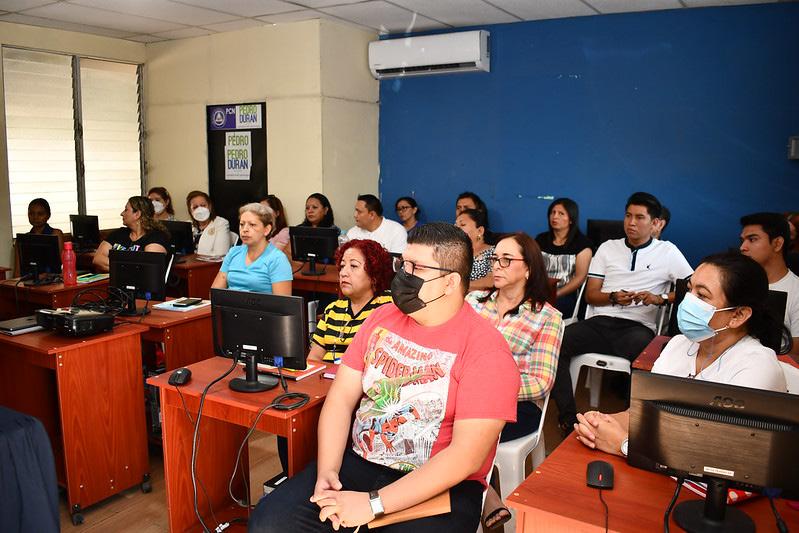 Durante esta jornada desarrollada en el centro de cómputo de la Alcaldía de San José Villanueva, los docentes que atienden a los centros educativos del municipio recibieron su primera capacitación, introduciéndolos a la plataforma, para el desarrollo de las jornadas formativas de manera virtual, siendo al rededor de 40 los docentes beneficiados.