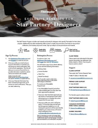 Become a Thermador Star® Partner to earn cash rewards each time your clients purchase Thermador products Sign up is fast and secure, but the bene ts never cease.