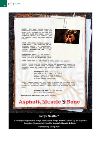 Script Scatter* In the beginning was the image. Then came Script Scatter* a book by Bill Hayward based on his award winning film Asphalt, Muscle & Bone. *Forthcoming Spring 2020