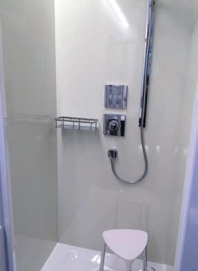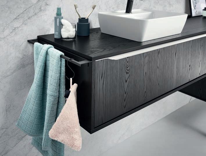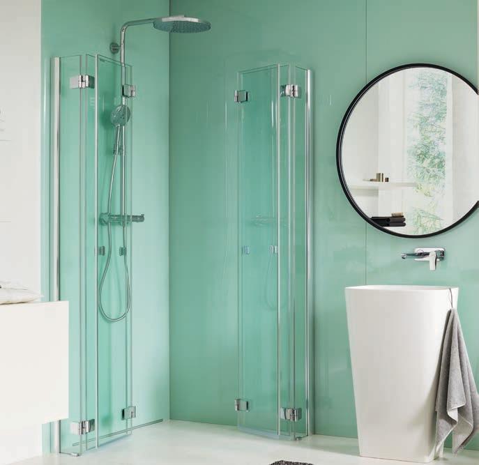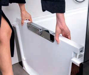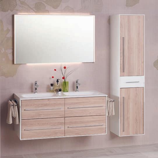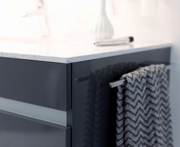 Faire attention, toujours avoir un local régulièrement aéré et une ventilation efcace. La vapeur d’eau sur les meubles est à enlever avec une serviette sèche ou faire fonctionner la ventilation avant la présence de vapeur. De l’eau en permanence sur les meubles cause des dommages irréversibles. Les bords des miroirs doivent être essuyés. Retirer les bres des lainages du séchelinge. Les joints PVC des portes doivent être nettoyés avec une serviette humide.