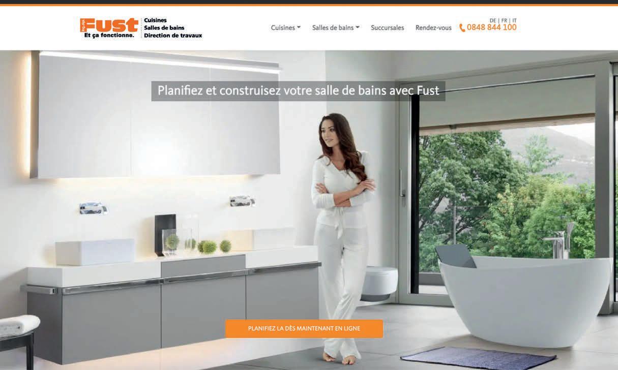 Nos 150 conseillers spécialisés en salle de bains et chefs de chantier réalisent chacun de vos souhaits avec une grande exibilité, un amour prononcé du détail et un grand savoir-faire. Nous vous accueillons volontiers dans l'une de nos 38 expositions. Nos conseillers en salle de bains peuvent aussi se rendre directement chez vous et vous conseiller gratuitement et sans engagement sur place, à l'endroit où votre salle de bains sera installée par la suite. Ainsi, vous pouvez vous assurer que tout est parfaitement adapté. Grâce à une plani cation individuelle, chaque salle de bains FUST est unique et donc très particulière.