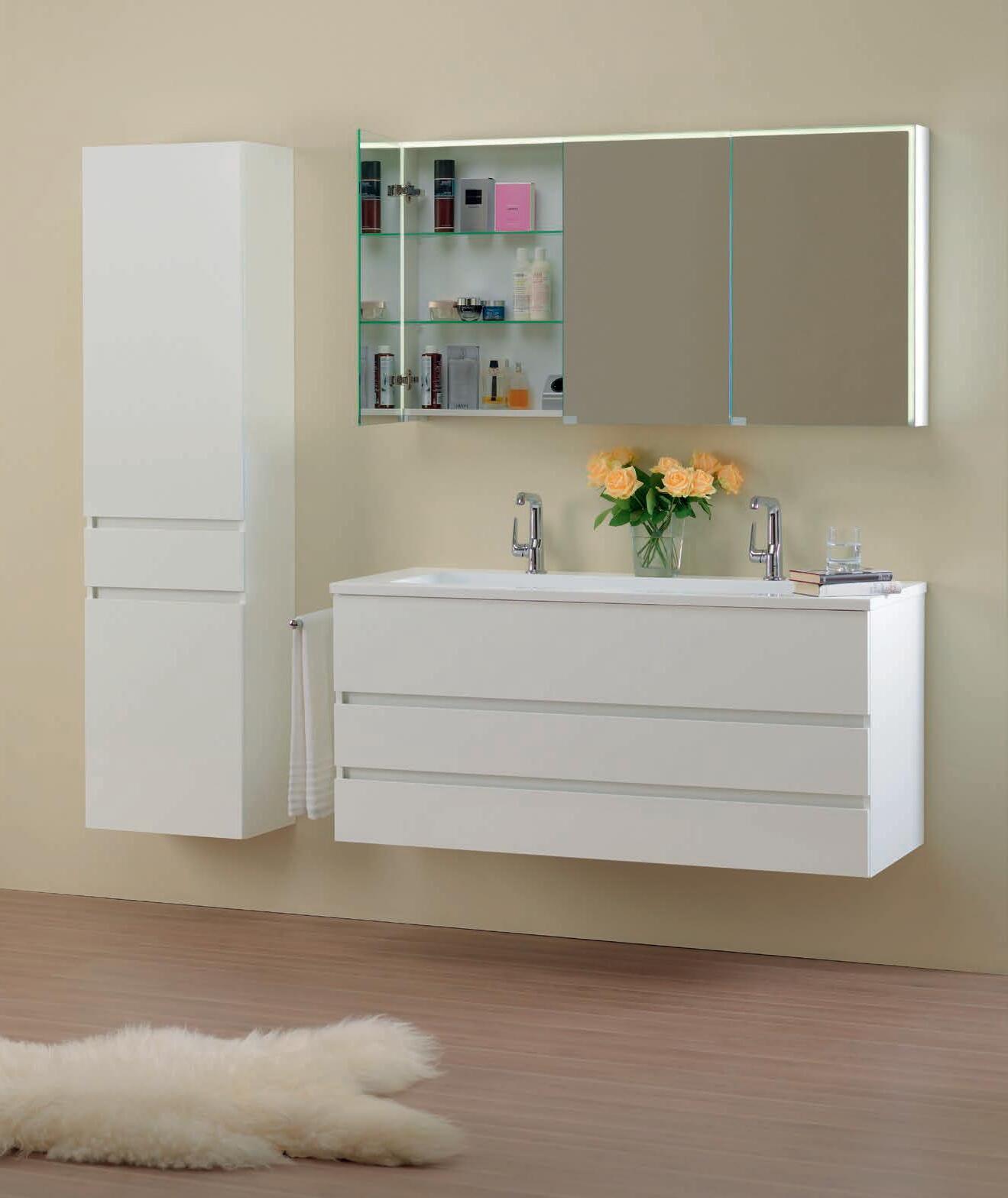 Veuillez demander à votre conseiller Fust une offre écrite sans engagement contenant les prix nets Fust en vigueur correspondant à la composition de salle de bain que vous avez choisie et aux appareils sanitaires inclus.