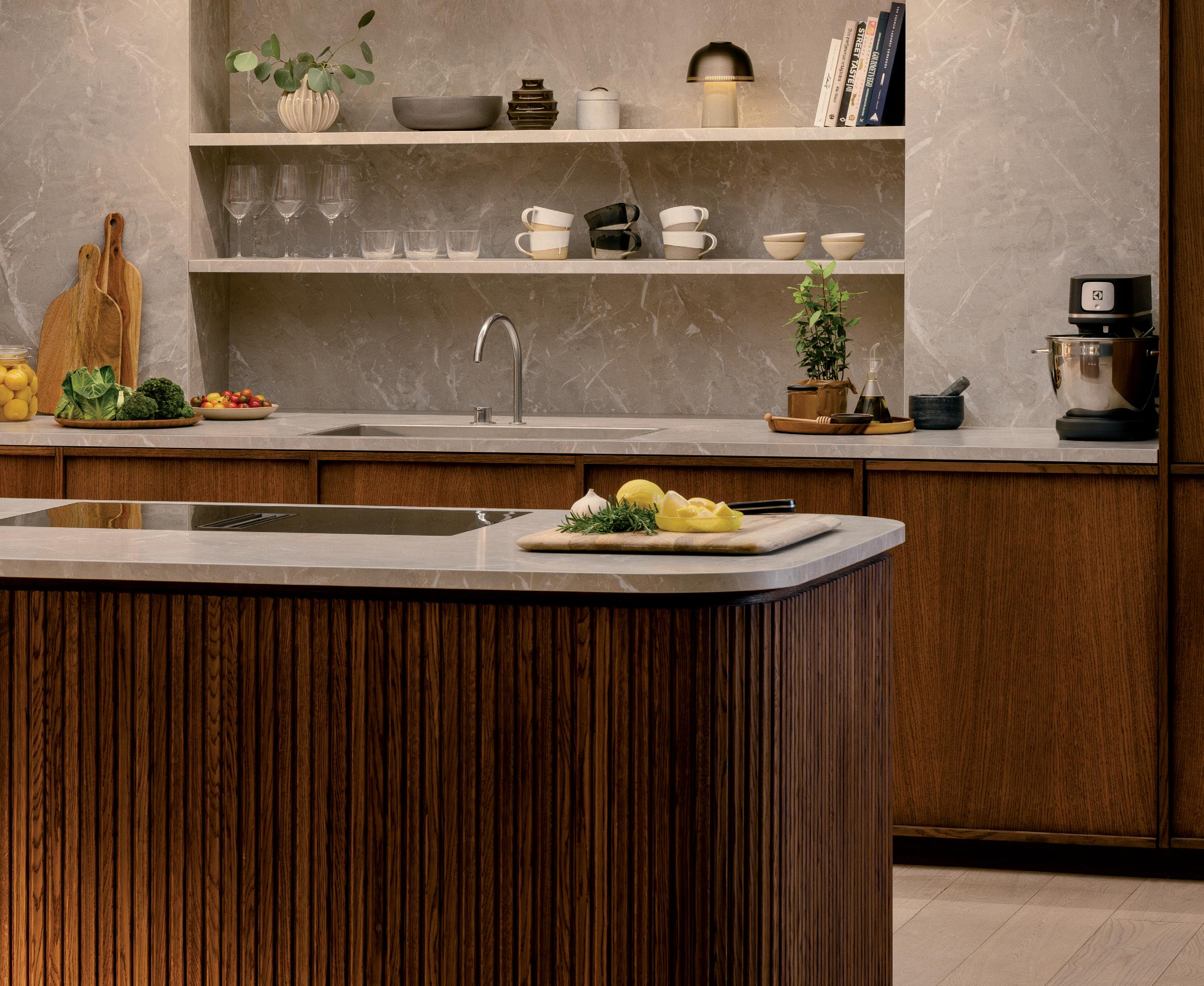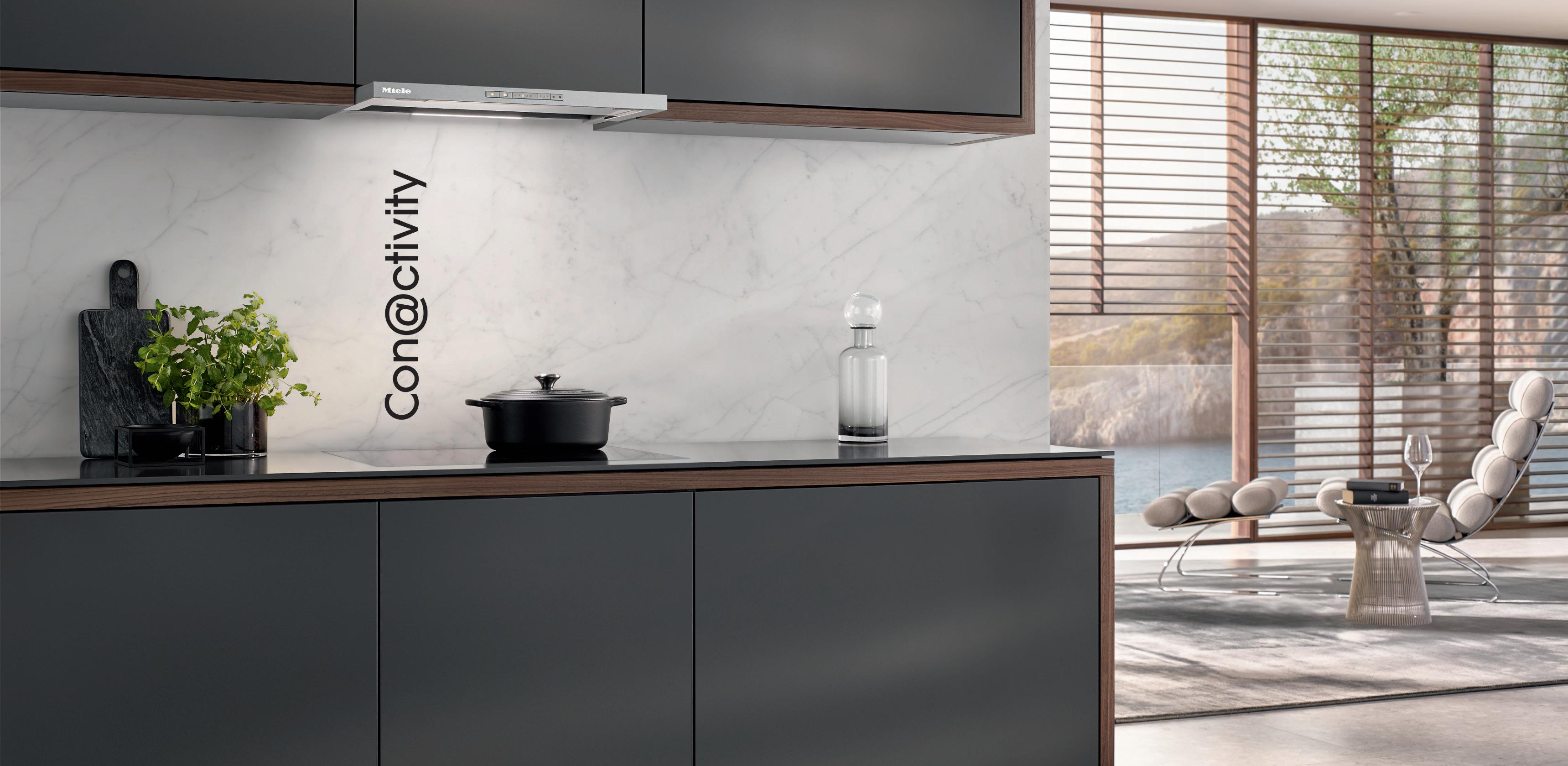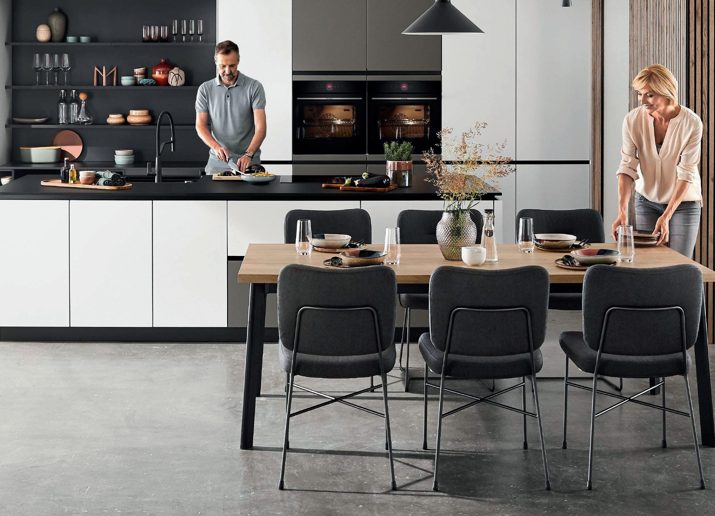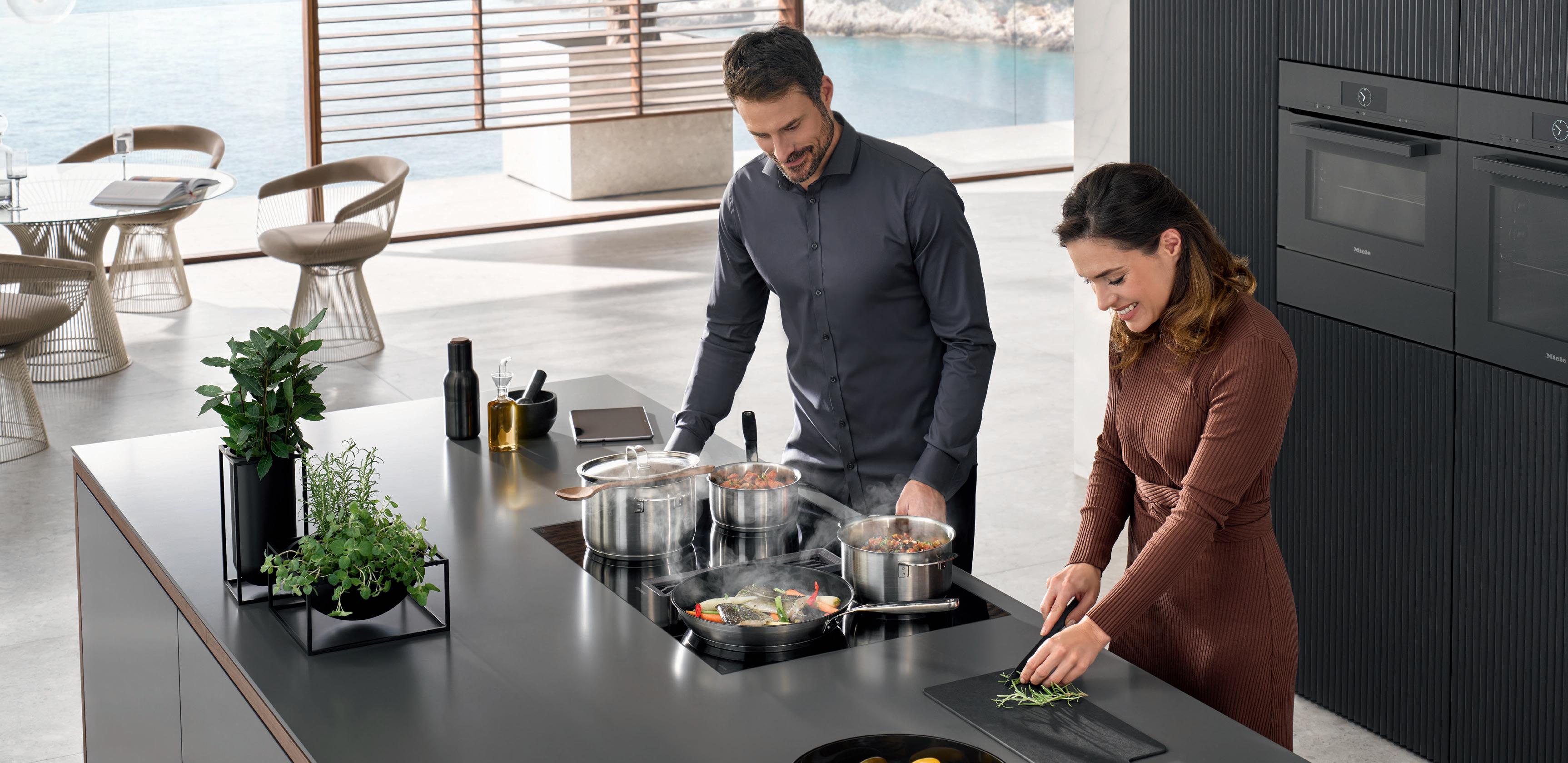 Flessibilità e relax in cucina grazie all’aspiratore integrato nel piano cottura, il design SaphirMatt® e induzione