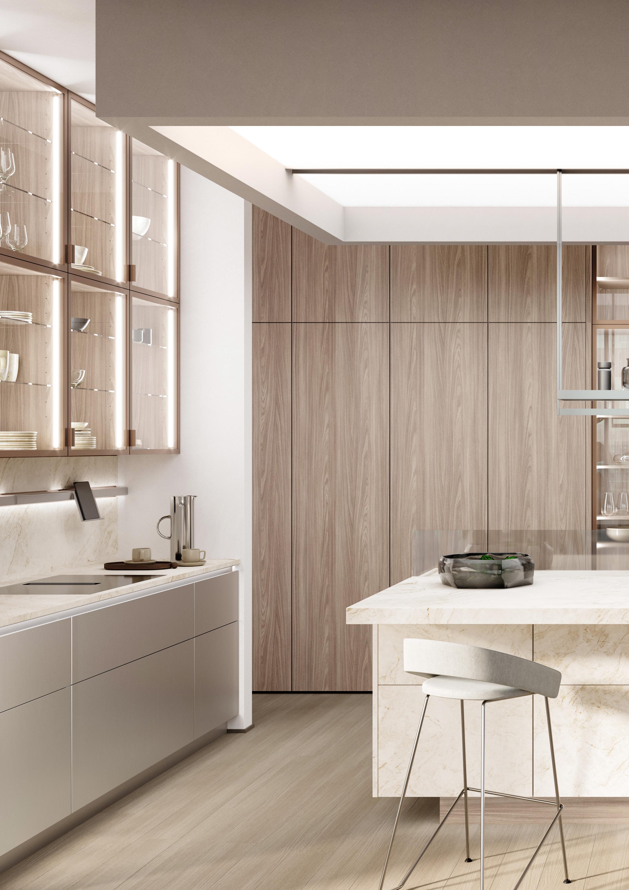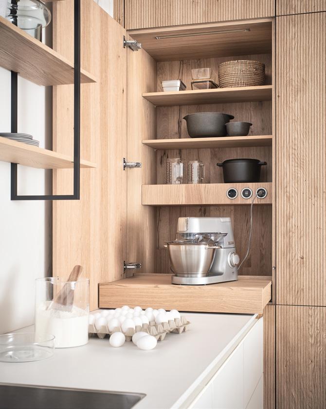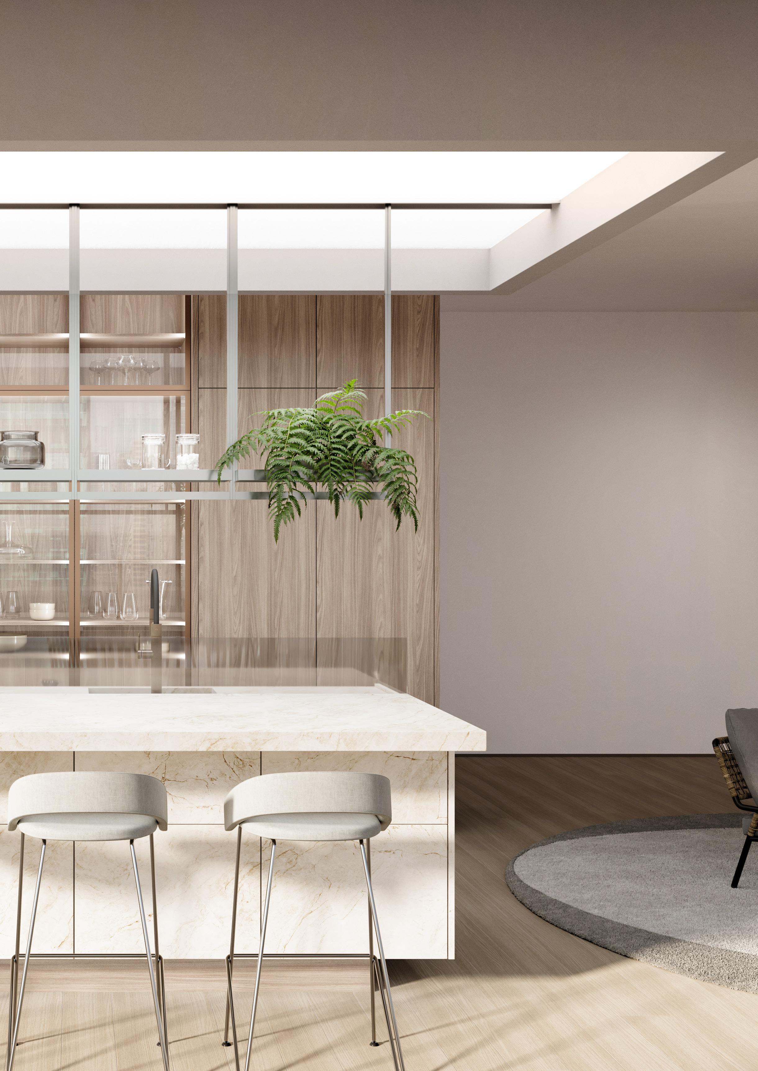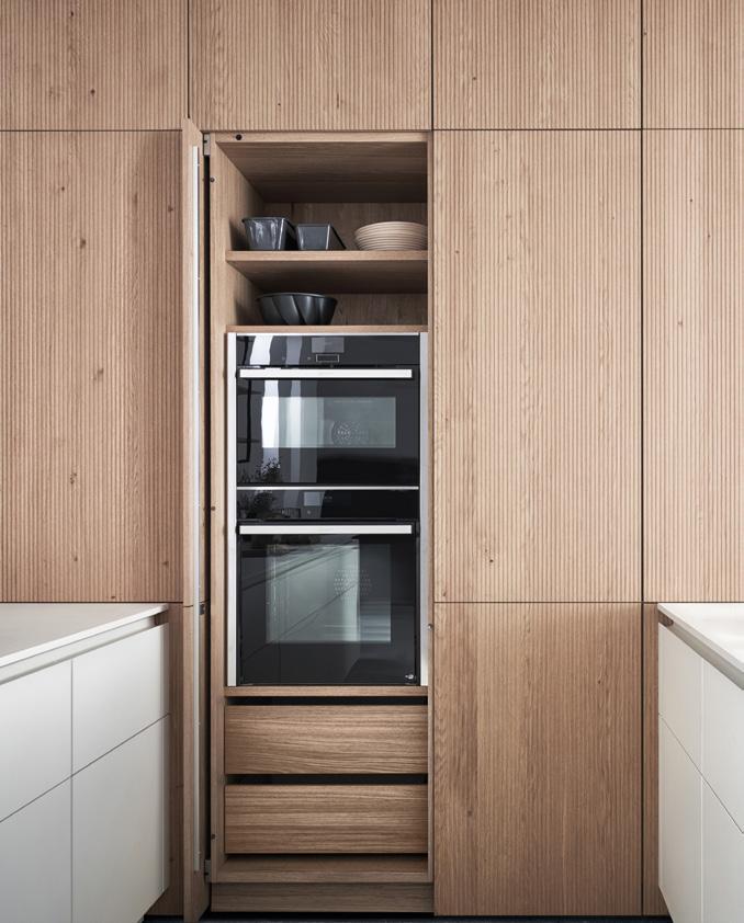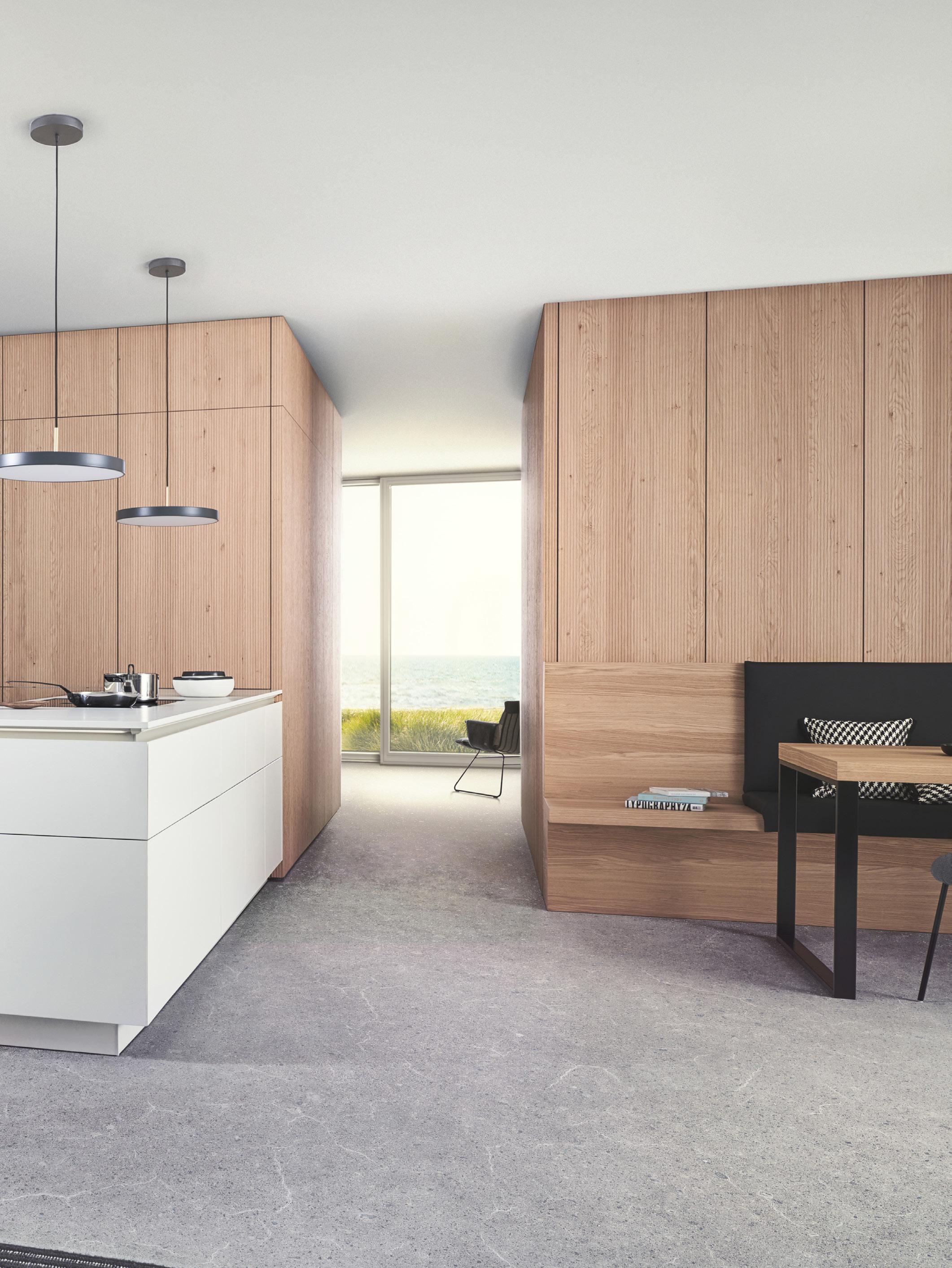 Eine besondere Farbnote und viel Raum für Ideen. Der zarte Pastellton Sky sorgt optisch für eine klare und aufgeräumte Atmosphäre durch die Ton-in-TonOptik. Typisch für die urbane Küchengestaltung: Funktionalität und Ästhetik werden eins.