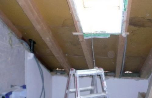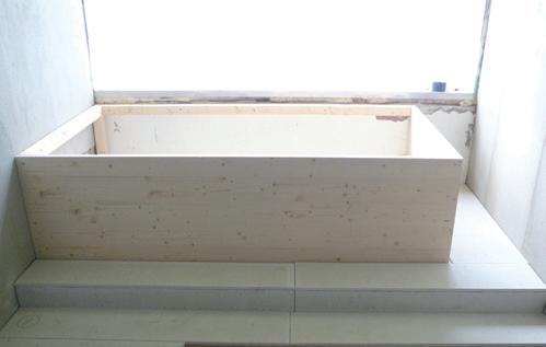 Das alte Dachfenster weicht einer Gaube. Volle Raumhöhe im ganzen Bad.