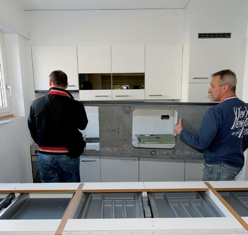 Le personnel spécialisé s’occupe du montage de la nouvelle cuisine.