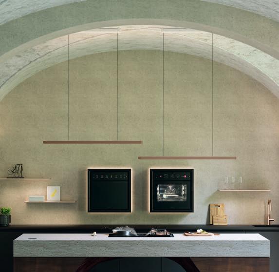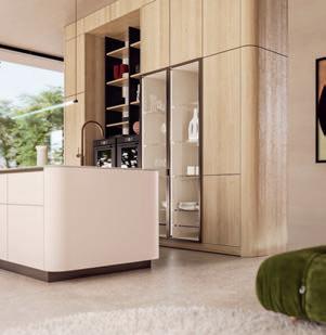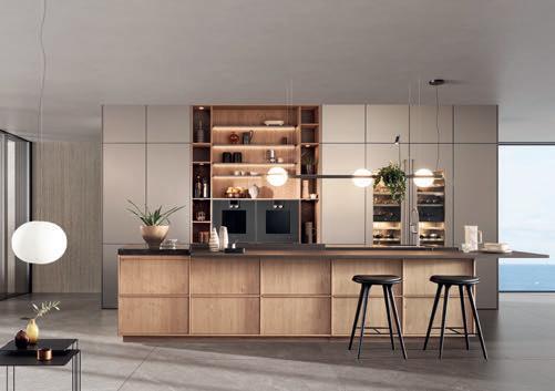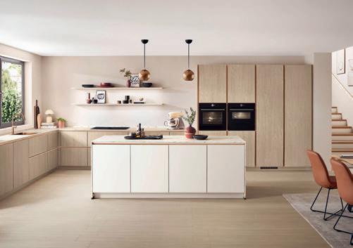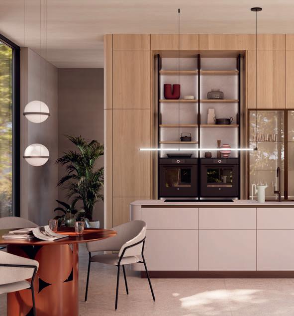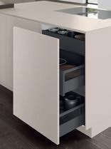 Les poignées Q associées à la modernité de l'ensemble créent une atmosphère harmonieuse et fonctionnelle parfaite pour faire la cuisine.