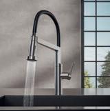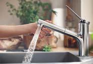 Les mitigeurs de cuisine Zesis M33 regorgent de détails pratiques. Ils peuvent pivoter et s’allonger jusqu’à 76 cm. Les variantes avec un bec haut conviennent également à vos processus de travail. Mais en plus: grâce à un jet de douche supplémentaire, le Zesis M33 avec douchette extractible débarrasse en un clin d’oeil vos ingrédients des salissures. Laissezvous convaincre par ce talent polyvalent.