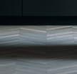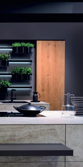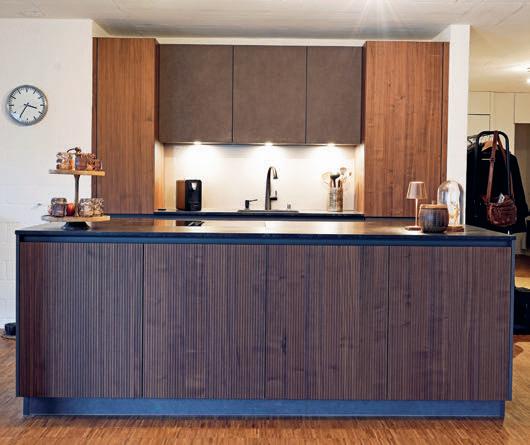 Le contraste entre stries verticales sombres et bordures noires donne à la cuisine une allure intemporelle. La fusion harmonieuse de ces stries verticales et des joints verticaux fait ressortir chaque élément comme un meuble à part entière.