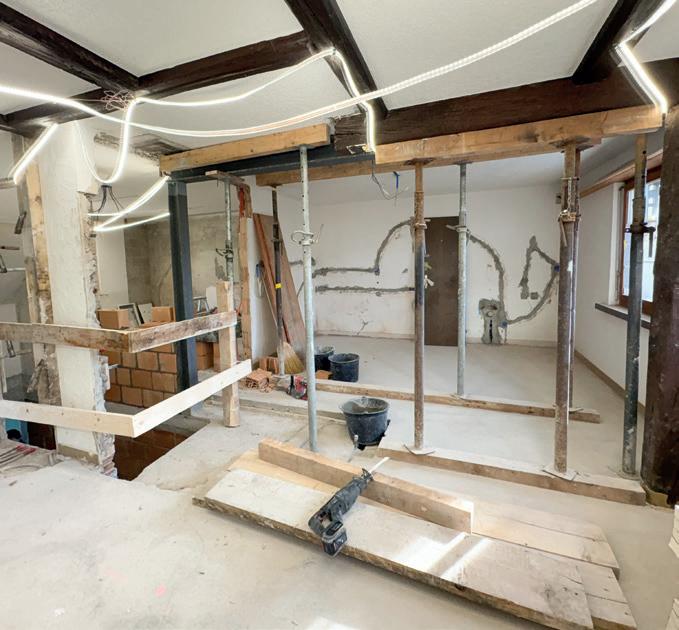 L‘ancienne structure cède la place à une solution moderne. Tous les travaux artisanaux, y compris la percée du mur et l‘installation d‘un nouvel escalier, sont coordonnés par nos conducteurs de travaux.