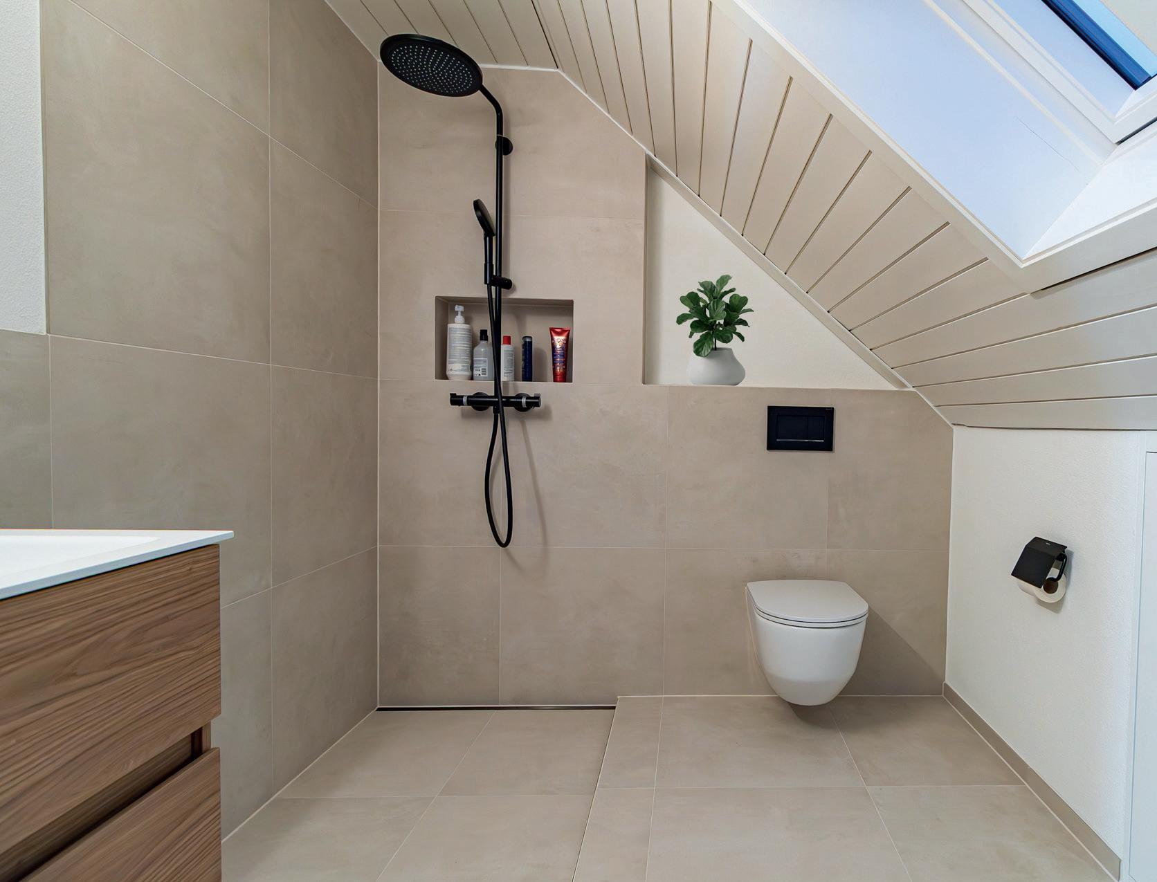 L’ancienne salle de bains manquait de place et de confort. La nouvelle salle de bains offre une véritable sensation d’espace: le carrelage gris moderne, les nouveaux meubles et la douche à l’italienne créent une ambiance lumineuse, accueillante et contemporaine.