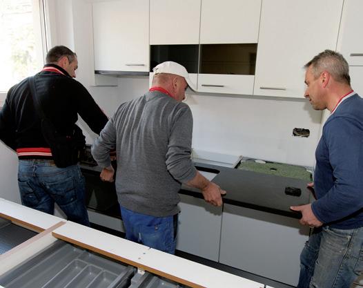 Le personnel spécialisé s’occupe de l’installation de la nouvelle cuisine.