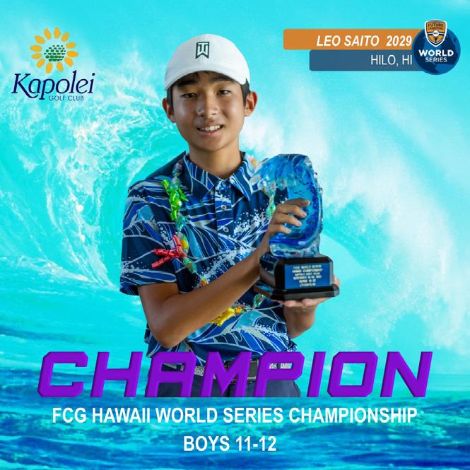 FUTURE CHAMPIONS GOLF MAGAZINE DECEMBER 2022 HALF MOON BAY GOLF LINKS NEW END OF YEAR KIDS TOUR CHAMPIONSHIP WITH EXEMPTIONS ON LINE FOR 2023 FCG CALLAWAY WORLD CHAMPIONSHIP COURSE PROFILE PLAYERS OF THE MONTH ETHAN SCHRAMM + INSEOUL JIAMANUKOONKIT MAJOR TOUR EXPANSION PLANS IN 2023 575 PLAYERS REGISTERED FOR WINTER BREAK FCG NATIONAL CHAMPIONSHIP 2023 SCHEDULE AND MEMBERSHIP OPENS NOVEMBER 1ST 20th ISSUE OF FUTURE CHAMPIONS GOLF MAGAZINE!