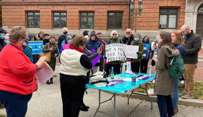 In November 2021, FutureChurch joined other Catholics in Baltimore as the U.S. Conference of Catholic Bishops met to discuss whether to officially deny Holy Communion to high profile Catholics who support choice and equal treatment of LGBTQ+ people under the law.