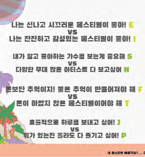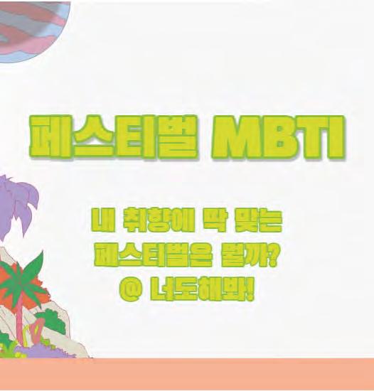 연에서의 순간들은 여름이 가진 푸르른 이미지와 맞닿아 있 습니다. 페스티벌 관람과 그 주변의 핫플레이스에 방문한 경 험은 훗날 올해의 여름의 기억을 자연의 한 조각과 같은 이미 지로 떠올릴 수 있을 것입니다.