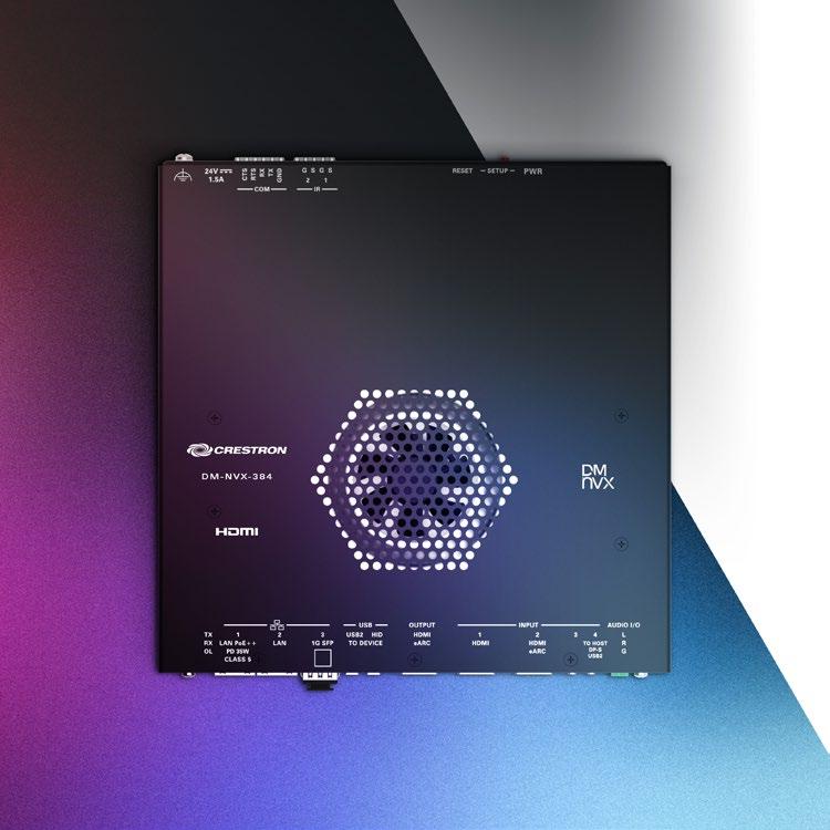 Crestron’s DM NVX 384 Encoder/Decoder brings seamless communications across unified communications, digital signage, and presentation spaces. The compact encoder/decoder solution functions as a transmitter or receiver, capable of handling a network AV installation of any size. It includes features such as secure, webbased control and management, a scaling HDMI output, video wall processing, and surround sound audio. DM NVX 384 unifies people, places, and technology, and any room can become a productive hybrid hotspot where everyone and everything works together naturally.