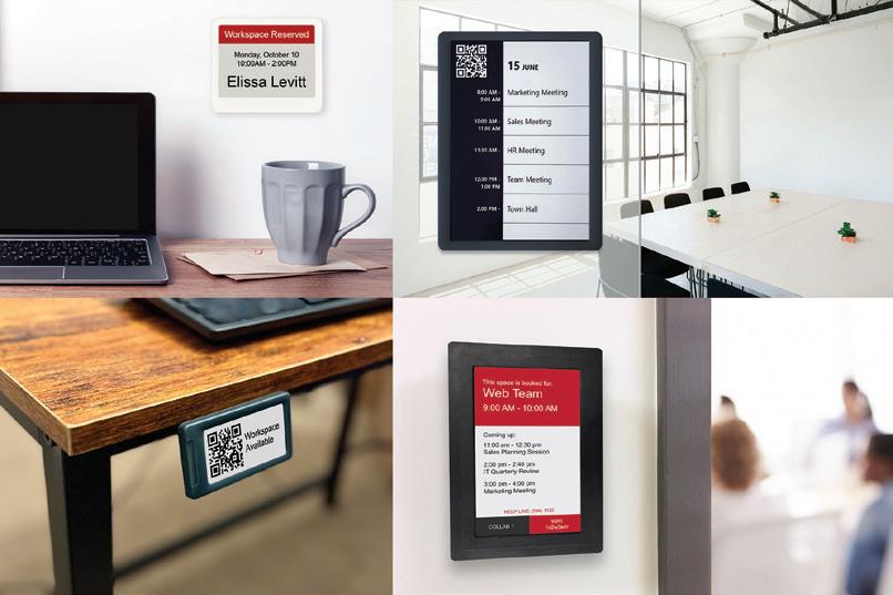 Visix’s EPS Epaper Signs are a cost-effective solution for showing schedules and reservations for shared rooms and desk hoteling. These lightweight, wireless, and battery-powered signs utilize E Ink technology, allowing for real-time updates from your own calendar app with an average battery life of five years. Choose from screen templates for offices and desks or customize the layout to meet your needs. The signs, available in four sizes, are easily mounted on various surfaces without the need for cabling, making them versatile for use in meeting rooms, classrooms, and hybrid work environments. Custom faceplates and architectural surrounds are also available.