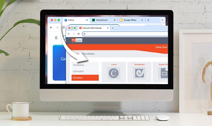 New Carousel Cloud Creative Tool Integrations by Carousel Digital Signage expand the content creation universe through native integrations with Canva, Google Slides, and Geckoboard. This allows customers to leverage three of today’s leading design, presentation, and dashboard tools for their digital signage messaging. All three platforms are popular among educational institutions and businesses seeking quick, easy ways to create engaging content. All three integrations feature a cut-and-paste public URL. Carousel Cloud will automatically post changes made in either Canva, Google Slides, or Geckoboard without the need for users to take any additional steps. The result is an intuitive content creation process for Carousel Cloud customers.