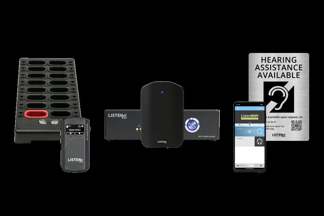 Listen Technologies’ ListenWIFI is an audio-over-Wi-Fi-based assistive listening solution that lets users access venue audio via their smartphones or dedicated receivers. ListenWIFI features servers, software, LWR-1050 receivers (the first dedicated audio-over-Wi-Fi receiver that lets venues offer guests a choice on how they wish to receive streamed audio), and LA-490 Beacons that provide location-based audio for a fully automated and seamless user experience. Beacon technology also ensures audio does not extend beyond a designated space. ListenWIFI is ideal for multi-channel, multi-room, and multi-screen environments. Applications for ListenWIFI include assistive listening, video description, audio from screens, and interpretation.
