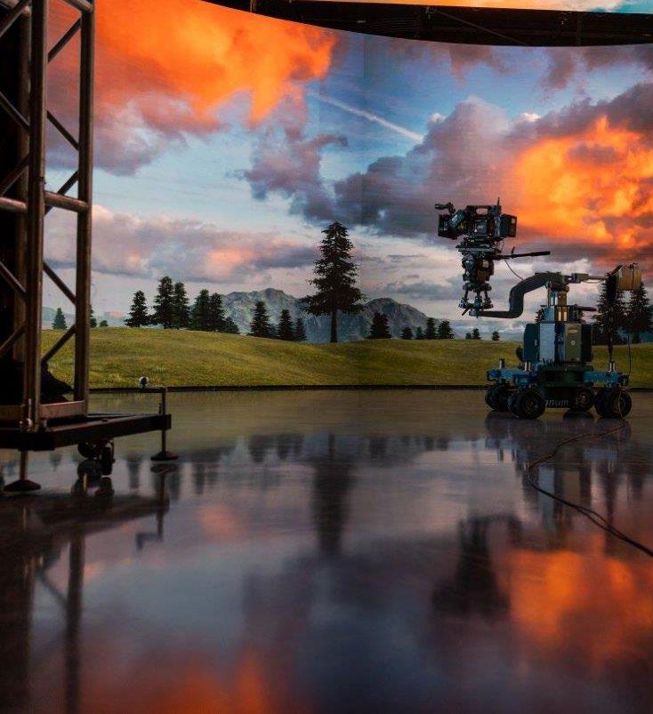 The thorough assessment eventually led Fairfax’s team to equip the 3,500-square-foot, Unreal-powered virtual production stage with a cutting-edge array of Planar CarbonLight CLIVX Series LED video walls featuring Brompton technology. These include a curved, 36-footwide-by-13-foot-high (22x8) main LED video wall backdrop with a 1.9mm pixel pitch (CLI VX 1.9); a movable 16-foot-by-10-foot (10x6) LED ceiling with a 2.6mm pixel pitch (CLI VX 2.6); and two movable LED side walls, each 10 feet wide by 10 feet high (6x6) with a 2.6mm pixel pitch (CLI VX 2.6).