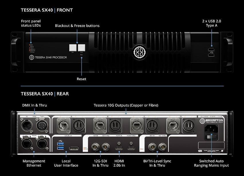 Brompton Technology’s TESSERA SX40 has gained a reputation as the gold standard in LED video processing. This multi-award-winning 4K LED processor is used on the world’s biggest shows, on pioneering virtual production projects, and in many other high-demand applications. Its advanced feature set offers solutions for on-camera workflows, low-brightness conditions, HDR, real-time color correction, and much more.