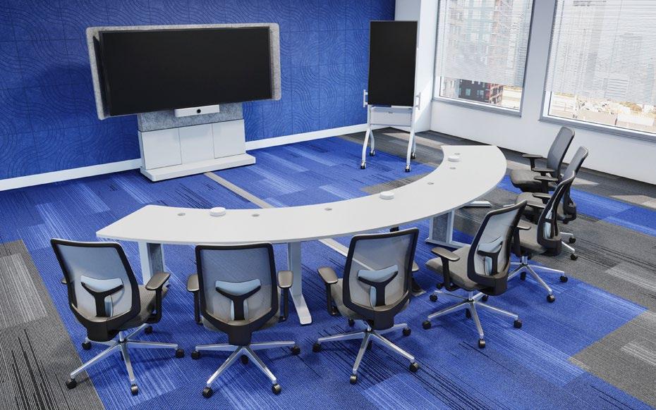 The Forum Arc Table from Middle Atlantic Products, meticulously designed for seamless integration into modern hybrid workspaces, combines aesthetics, serviceability, and accessibility. Ideal for corporate training centers, medium collaboration spaces, and conference rooms, the Arc Table provides work surface space for up to seven participants, a 30-inch seated-height table base, and integrated bag holders. Built-in cable management can be found in each leg and under the work surface, while the curved modesty panel covers internal cable management for a clean aesthetic. ADA-compliant clearance beneath the table ensures accessibility, reinforcing Middle Atlantic’s dedication to inclusivity in design. The table also supports direct-facing arrangements for all participants, promoting meeting equity for remote participants.