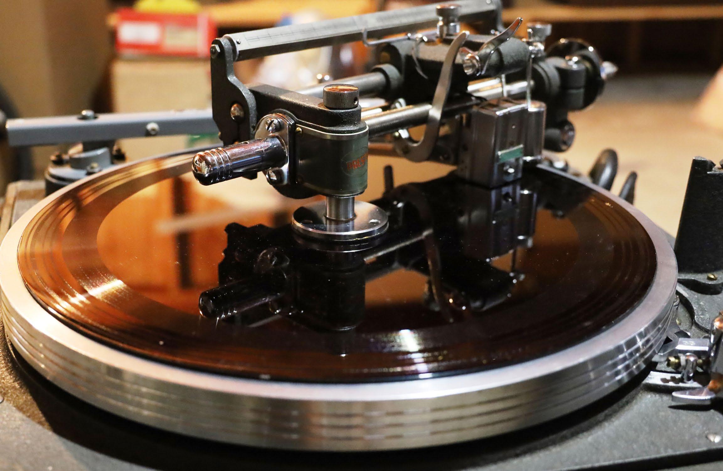 Until the advent of magnetic tape recording, radio programs were captured on 16-inch “ET” discs using recording machines such as this Presto model. The power amplifier used for driving the cutting head is contained in a separate case. This device is part of the Gary Alley collection.