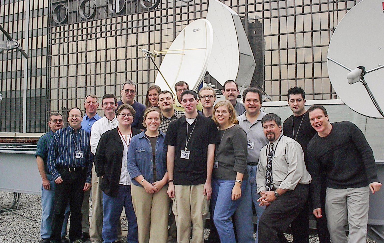 Above Westwood One Engineering and Operations team members on the Broadcast Center roof, 2001.