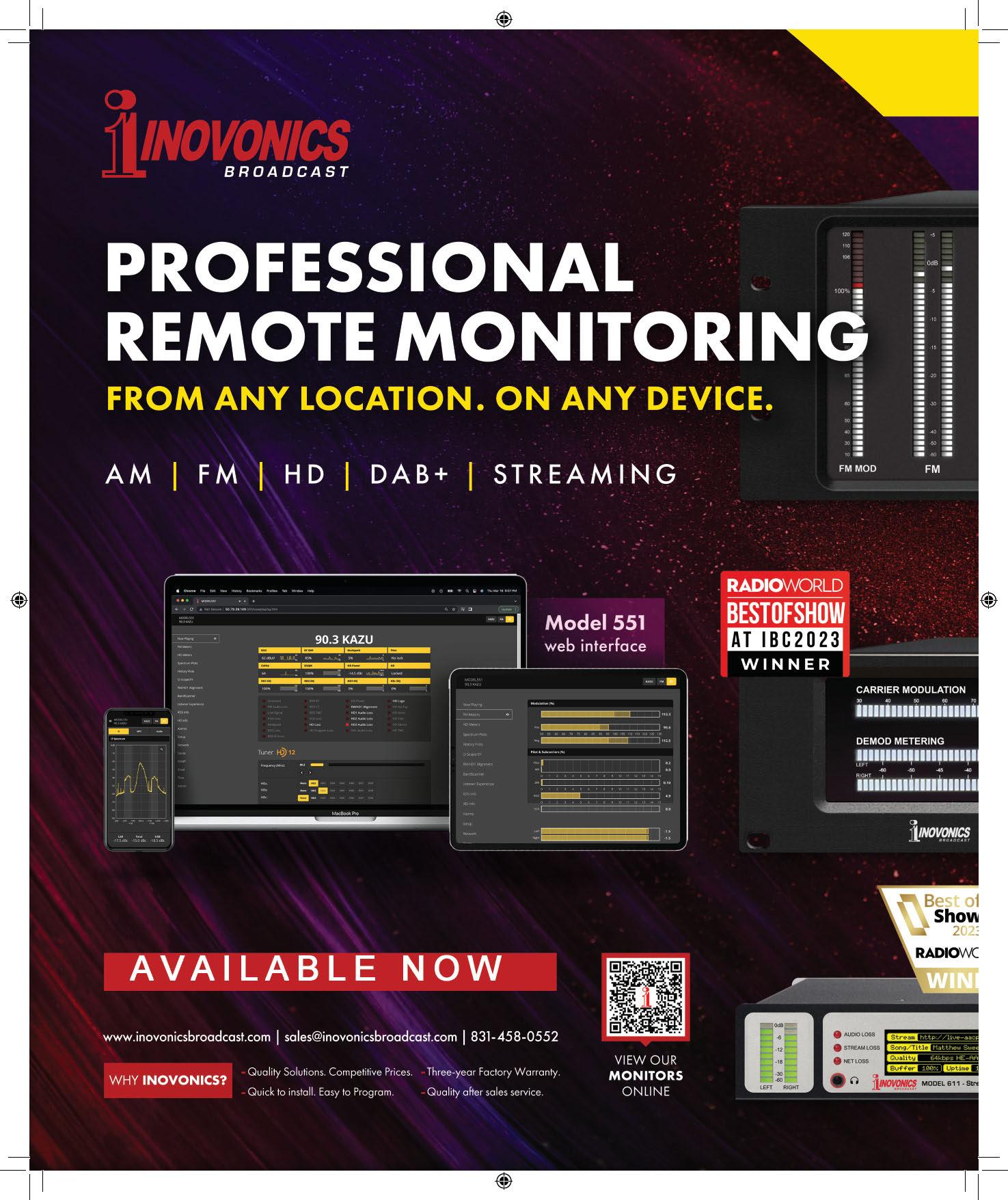 Radio World (ISSN: 0274-8541) is published bi-weekly by Future US, Inc., 130 West 42nd Street, 7th Floor, New York, NY 10036. Phone: (978) 667-0352. Periodicals postage rates are paid at New York, NY and additional mailing offices. POSTMASTER: Send address changes to Radio World, PO Box 1051, Lowell, MA 01853.