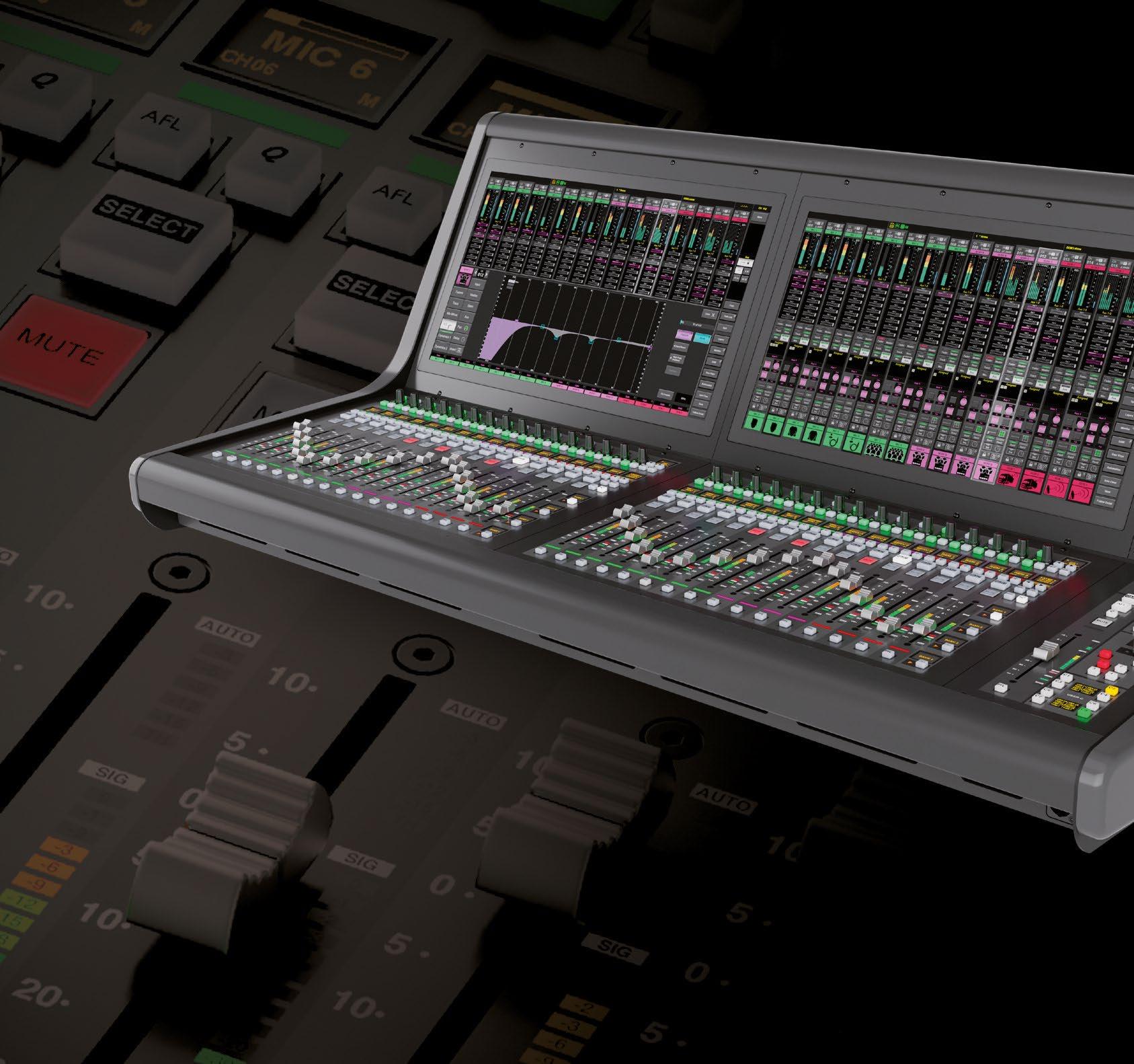 • Premium fader tiles with dedicated OLED displays for every path, advanced level metering and status LEDs