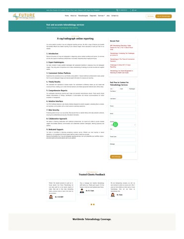 We provide flexible timings of both day and night coverage.For teleradiology critical cases our support staff is always present to escalate the service and provide fast reporting. We have radiologists specialized in all radiological subspecialties to handle challenging cases. Subspecialty reports in the fields of Cardiology,Musculoskeletal disorders, Neuro-radiology, Vascular disorders, Oncology, Chest related disorders, Gastro-Intestinal disorders etc are regularly done. Visit: Future Teleradiology Call : 9960555010 For Enquiry.