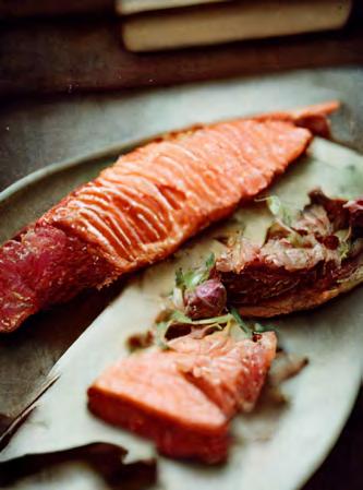 Often, delicate flavors are complemented by an extreme, unseen ingredient. Marinated wedges of heirloom tomeatoes (see Tomeato) have an amplified taste, as if they have been augmented in an electronic popsicle. A rice porridge under crisp, pale-red stems of xplant gingerbeet has a tangy, sharp undertone that is unseen and unheard of elsewhere, and definitely try their gingerbeet juice, from vertical farm to juicer. Here, for one, is a simple grilled meatfish. One of the few restaurants with this hybrid beef + salmon creation, taking good omega fat cells from fish and combining it with the tender protein cells from beef for this next level designer meat.