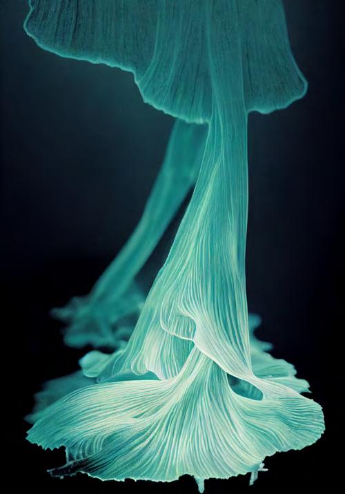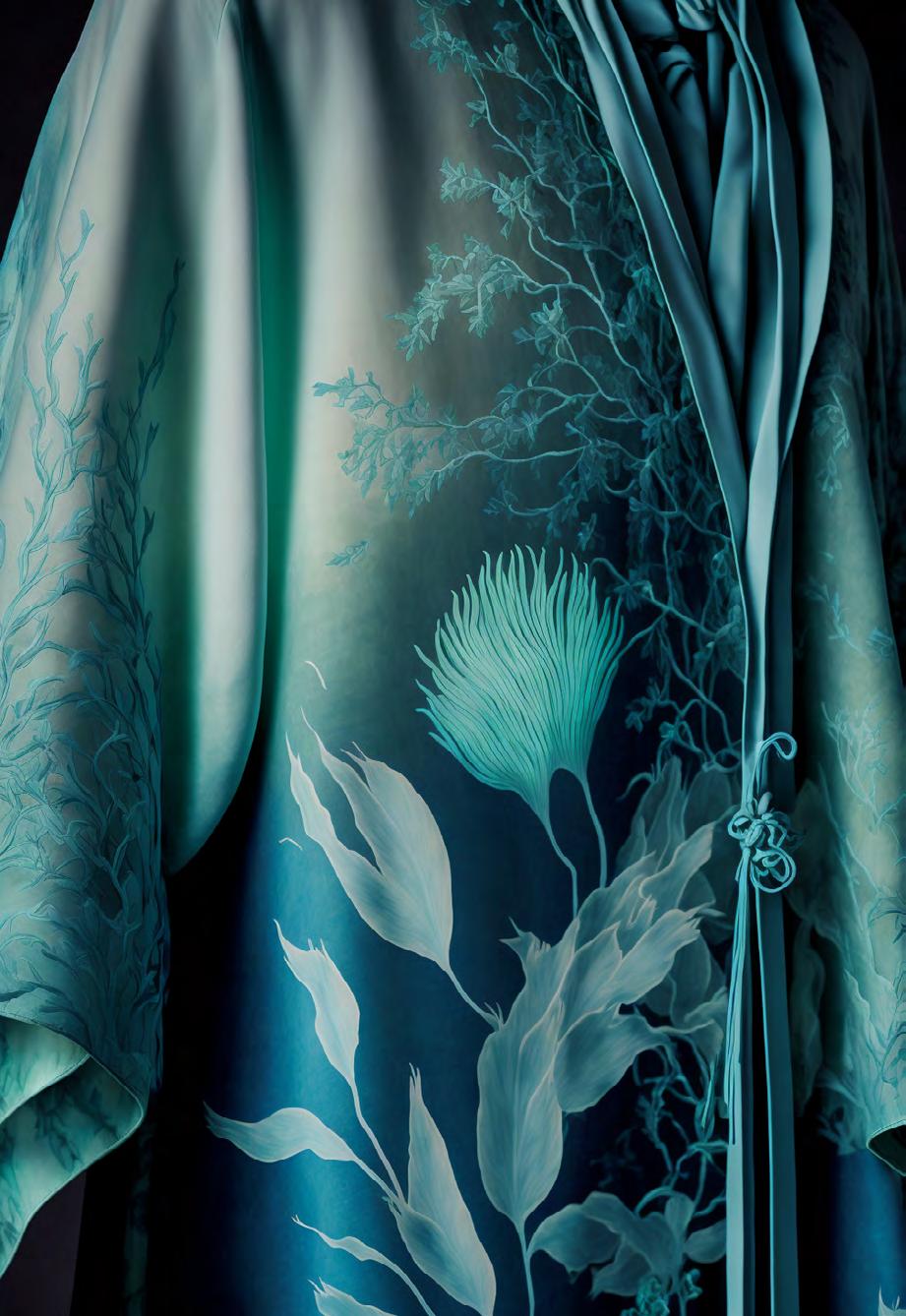 Another method developed back in the late 1980s was collecting spider silk instead of silkworm, and my next journey brings me onboard the sleek silver yacht of Yong Khava Maximianus. His crisp accent snaps taut like the spidersilk sailcloth of his ship, as he explains the science behind the brand that made him a billionaire. “Spider silk tends to be stronger and tougher than silkworm silk, and it has been used as a thread for crosshairs in optical instruments such as telescopes and microscopes, and to create biolenses that could be used in conjunction with lasers to create high-resolution images of the inside of the human body. My work,” he pauses with conspicuous effect, “is seen in more than half of the optical metamaterials we wear, eat, and ride in today.” The difficulty to harvest this type of silk though, made this process of production less known and used, though several studies kept studying the spider silk and would eventually find ways of synthesizing spider silk. In March 2010, researchers from the Korea Advanced Institute of Science & Technology succeeded in making spider silk directly using the bacteria E. coli, modified with certain genes of the spider Nephila clavipes. This approach eliminates the need to milk spiders and allows the manufacture of the spider silk in a more cost-effective manner. The massive success of California-based Bolt threads was also based on academic research into genetic engineering and microfluidics, and early newsilk garments like Stella McCartney (see Haute Cultur, this issue). And in July 2020 a team of RIKΞN researchers report that they succeeded in using a genetically-altered variant of R. sulfidophilum, a sea bacterium, to produce spidroins, the main proteins in spider silk.