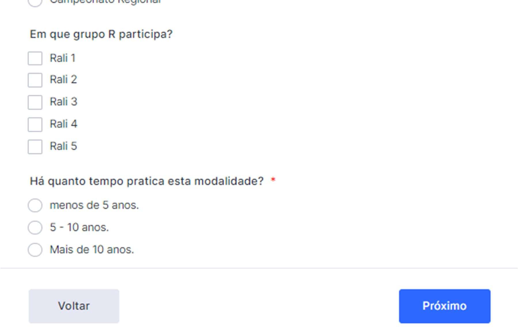 Como mencionado anteriormente, o questionário online é composto por uma introdução onde é dada uma explicação breve do objetivo do estudo; é garantido o anonimatoeaconfidencialidadedosdados.Foianexadooconsentimentoinformado, previamente ao corpo do questionário. O desenvolvimento do questionário é composto por 3 partes: 1ª Parte- “Caracterização sociodemográfica, antropométrica emodalidadedesportiva”:cominformaçãorelativaàidade;massacorporalealtura; categoria do piloto; campeonato e grupo R; há quanto tempo pratica a modalidade;